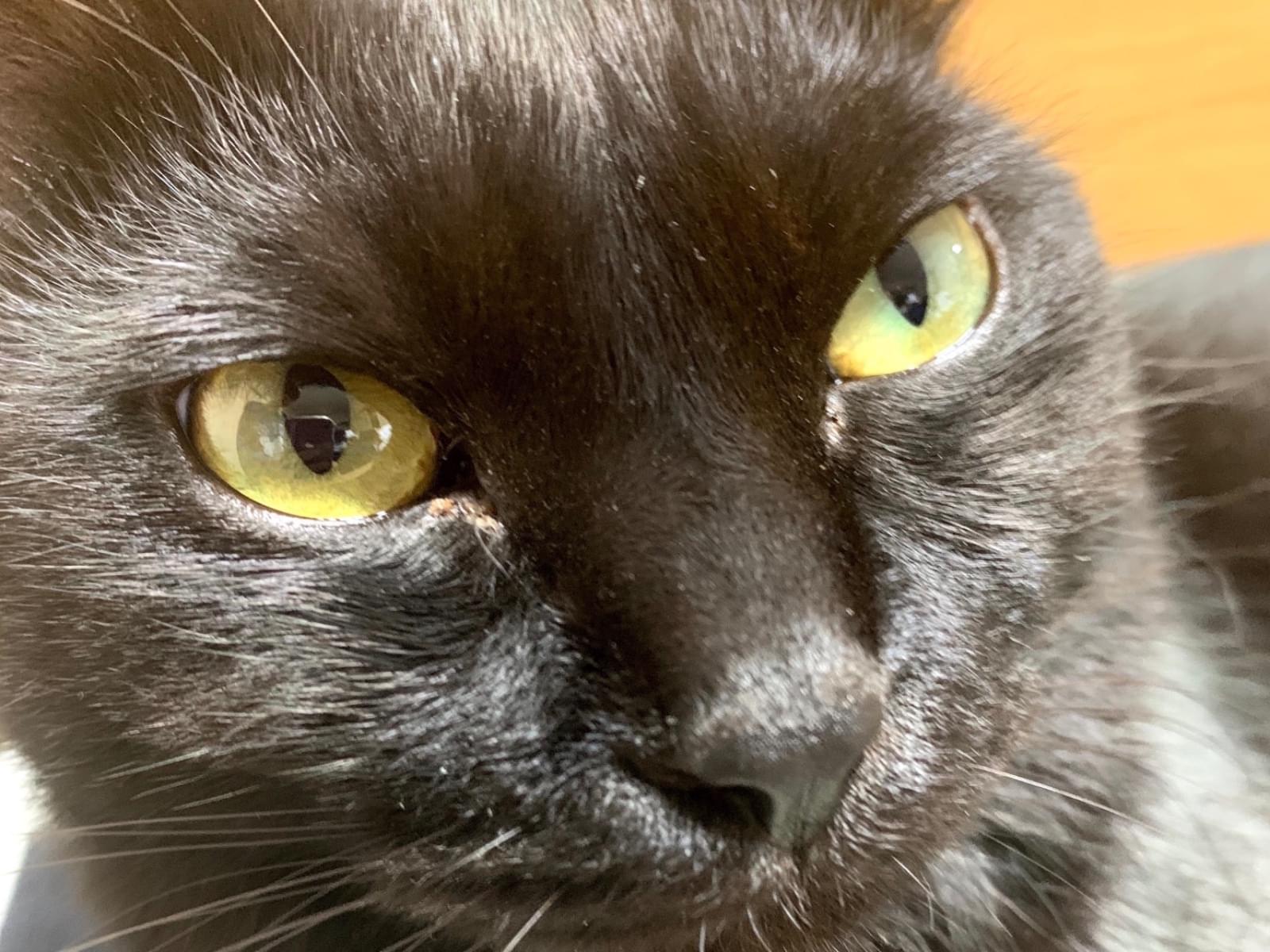 体型スリム瞳は黄色、尻尾は真っ直ぐで長いです