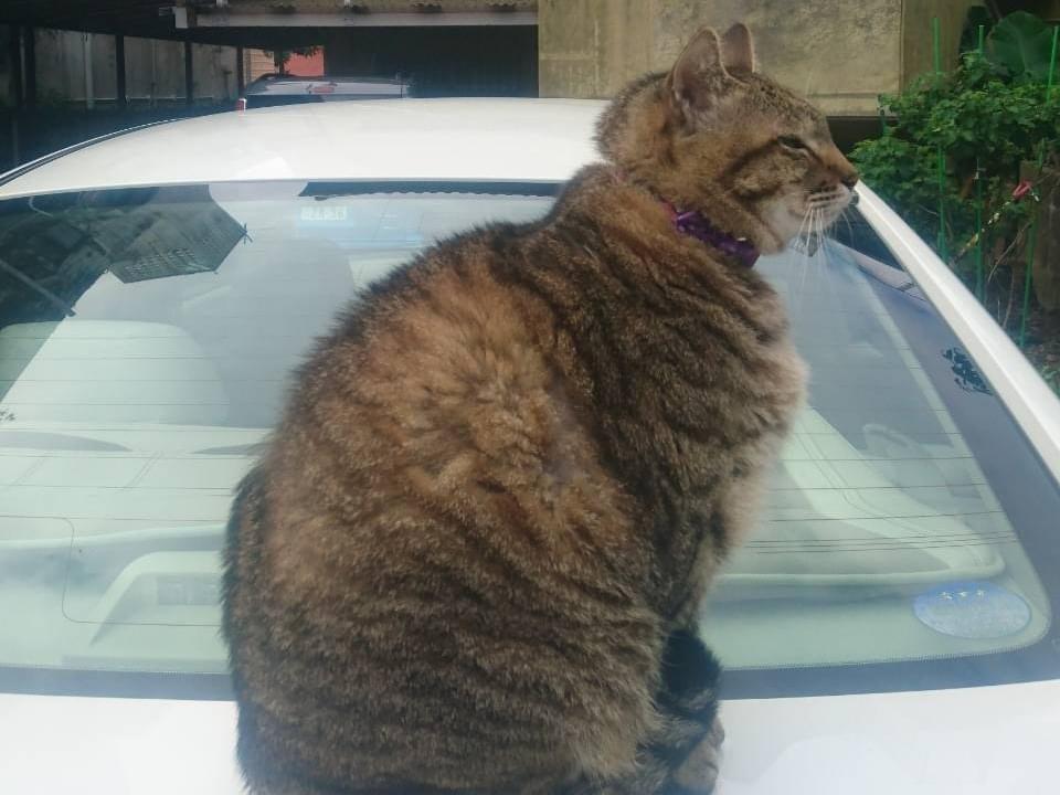 首里中学校の給食室で茶虎の首輪をした猫を見かけます