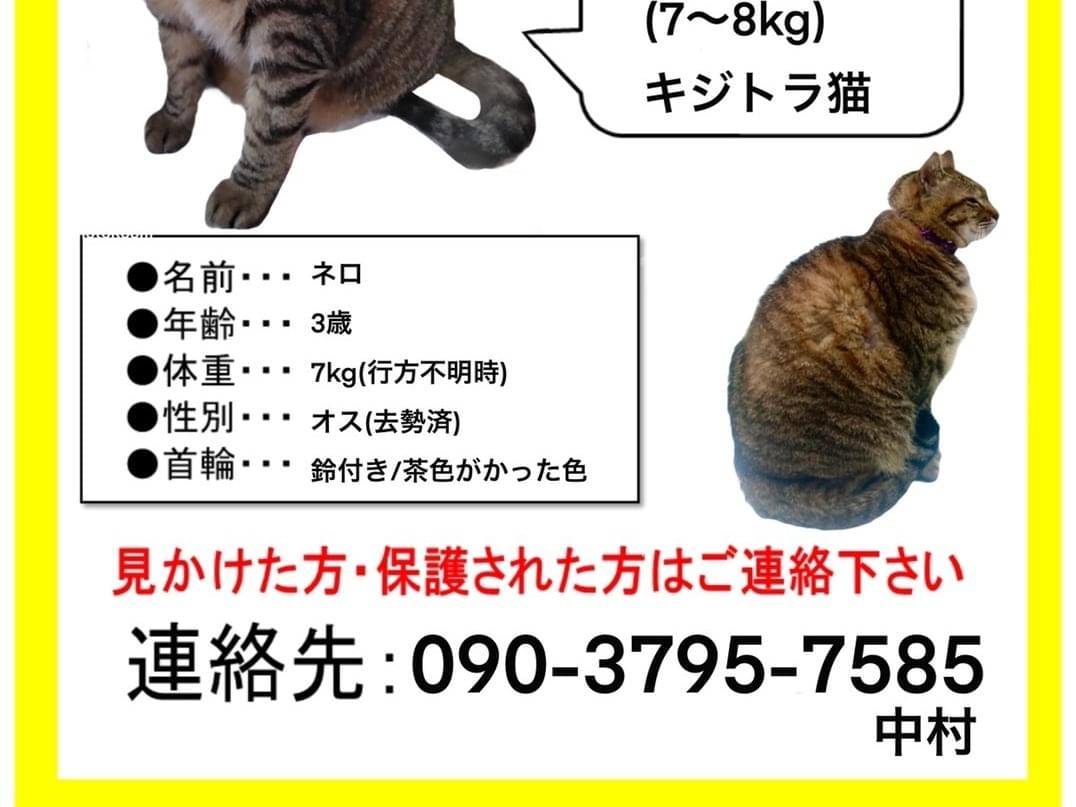 人懐っこいキジトラの猫を探しています。(去勢済・オス・3歳)