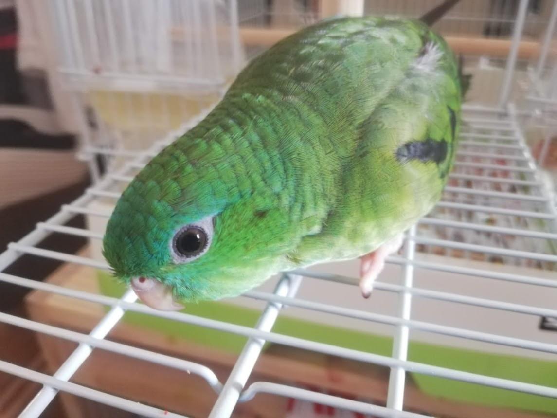 特徴:羽切されたグリーンです。おしゃべりはできませんが様々な鳴き声を出します。呼び鳴きは大きいです。何も身につけていません。