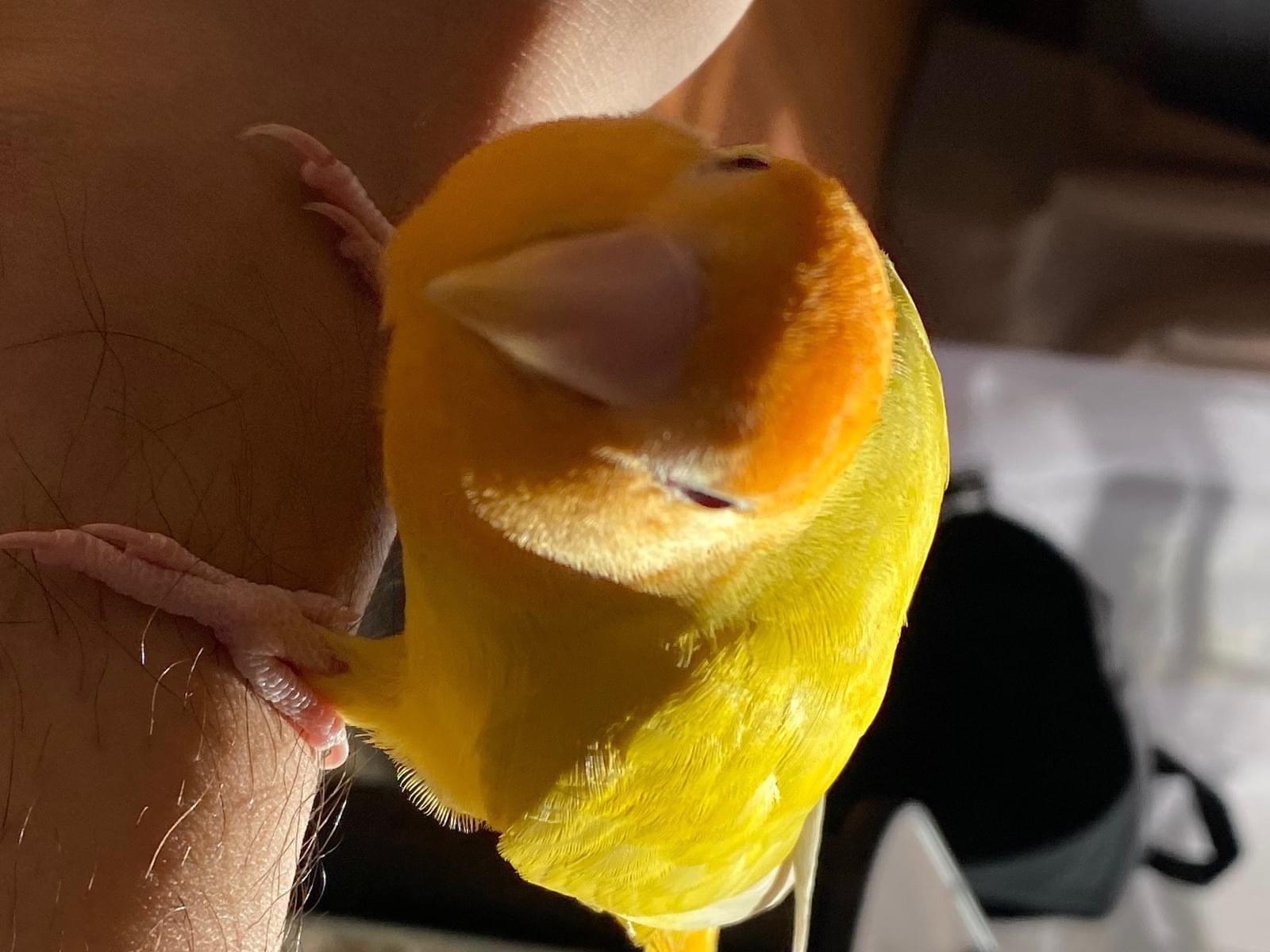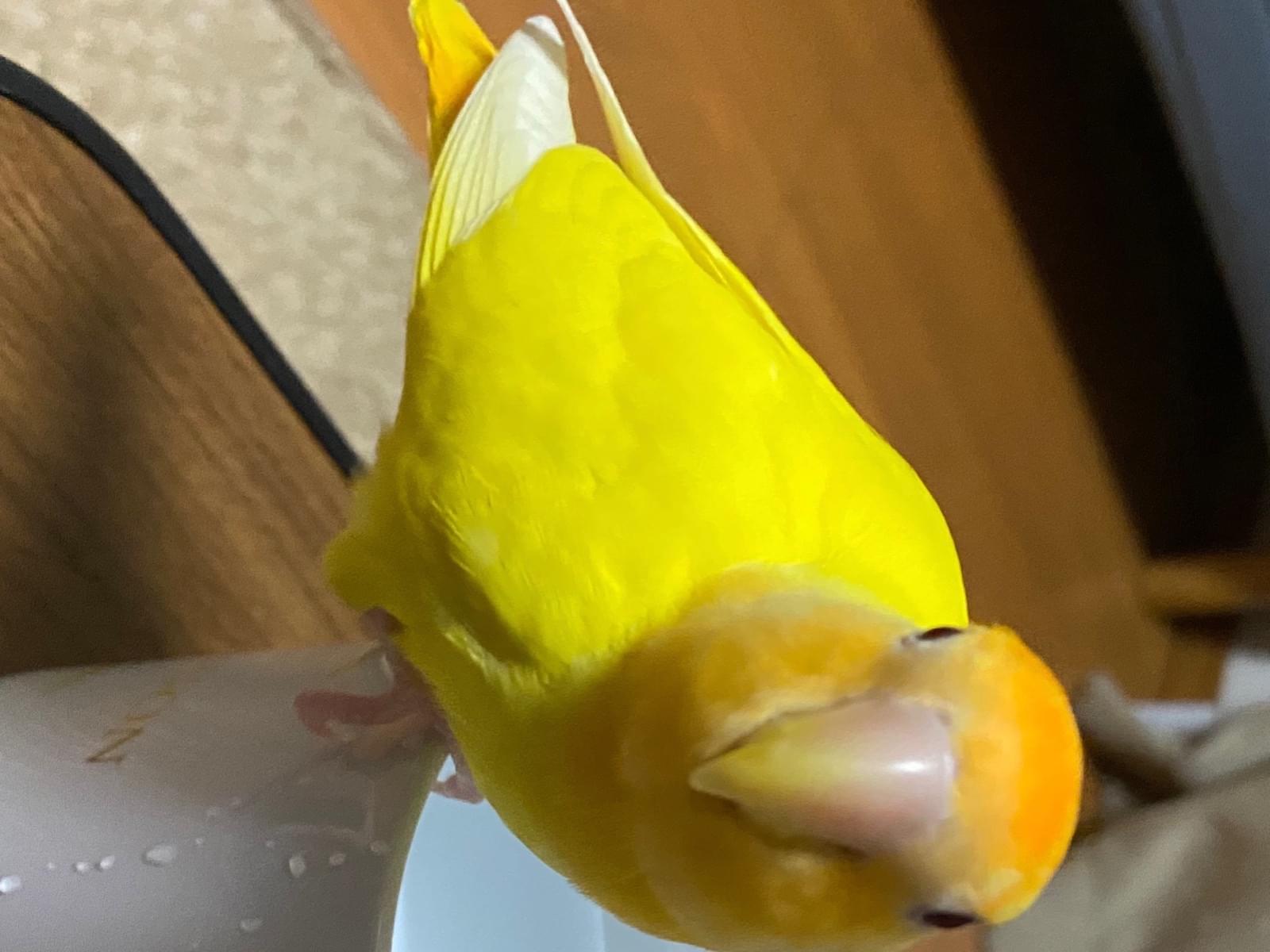 毛を脱いていたのか左の羽の上の方に少し毛が生えてない部分があります。