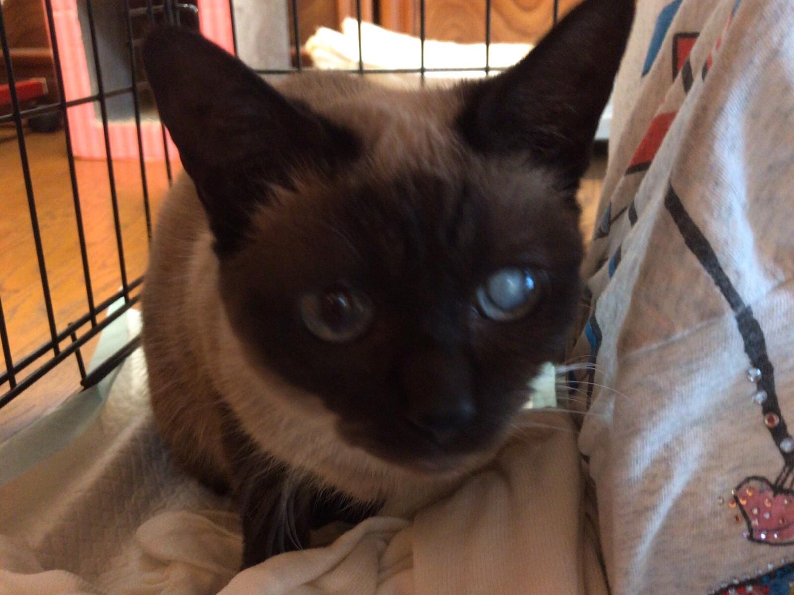 病院にも連れて行きました。左目が白内障との事。高齢のメスで、きっと飼い猫さんだろうとの事。キバが少し口からはみだしています。耳も少し聞こえにくそうです。