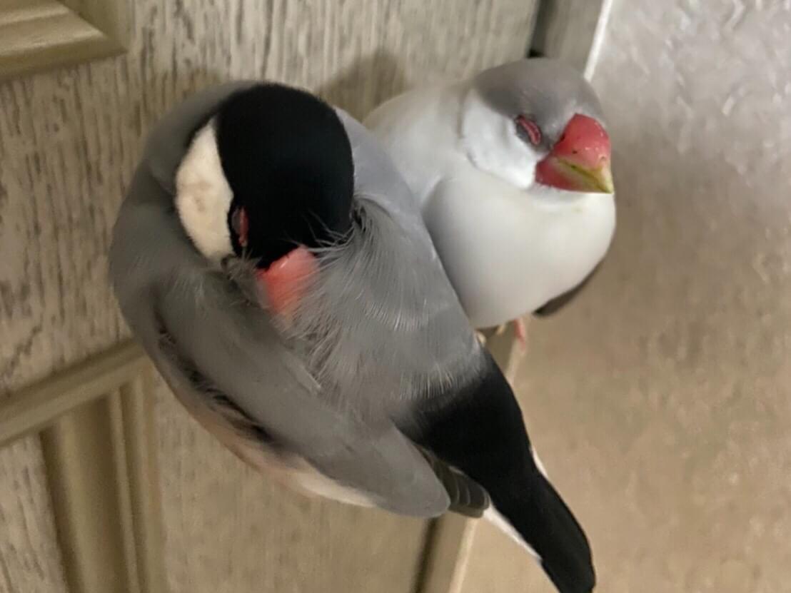 ドアノブの上で、いつも桜文鳥と仲良く昼寝してました。