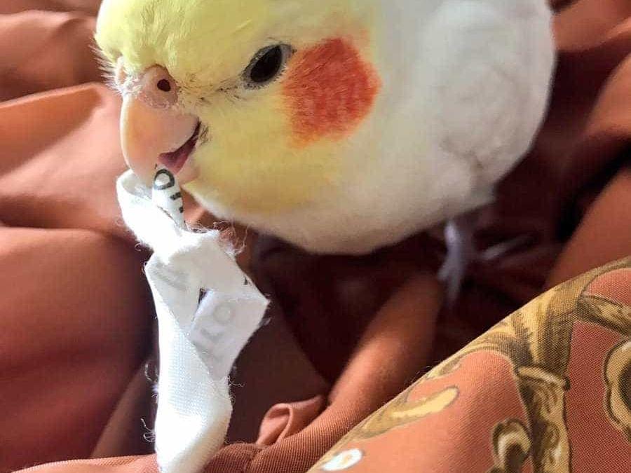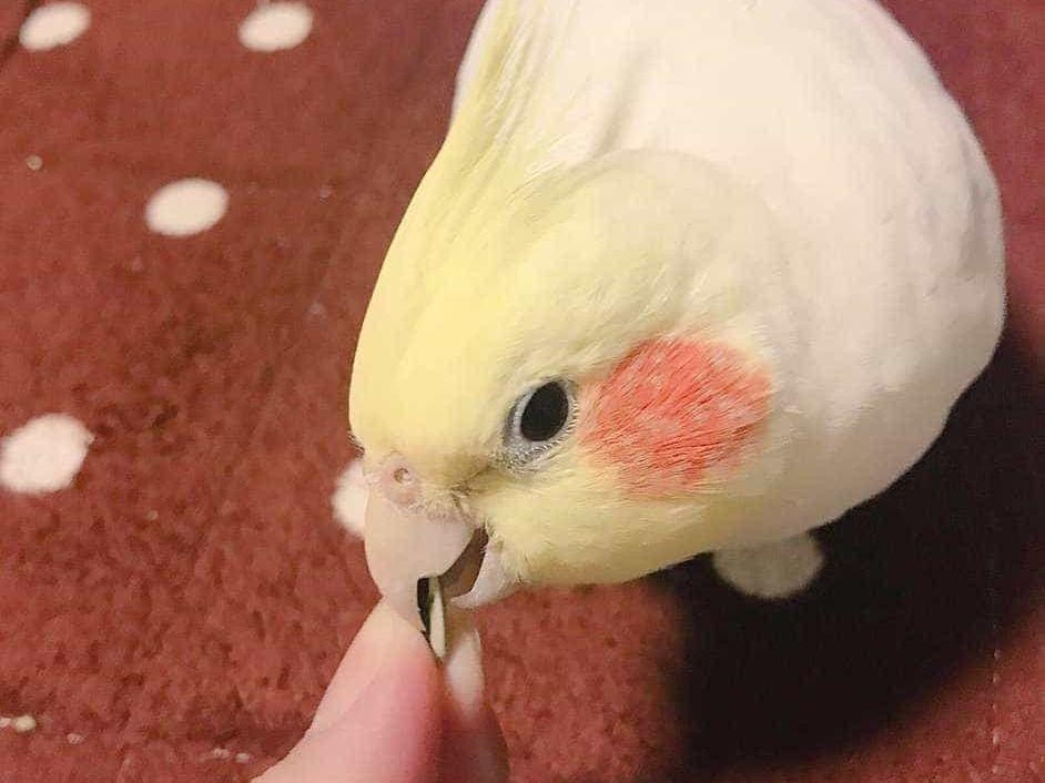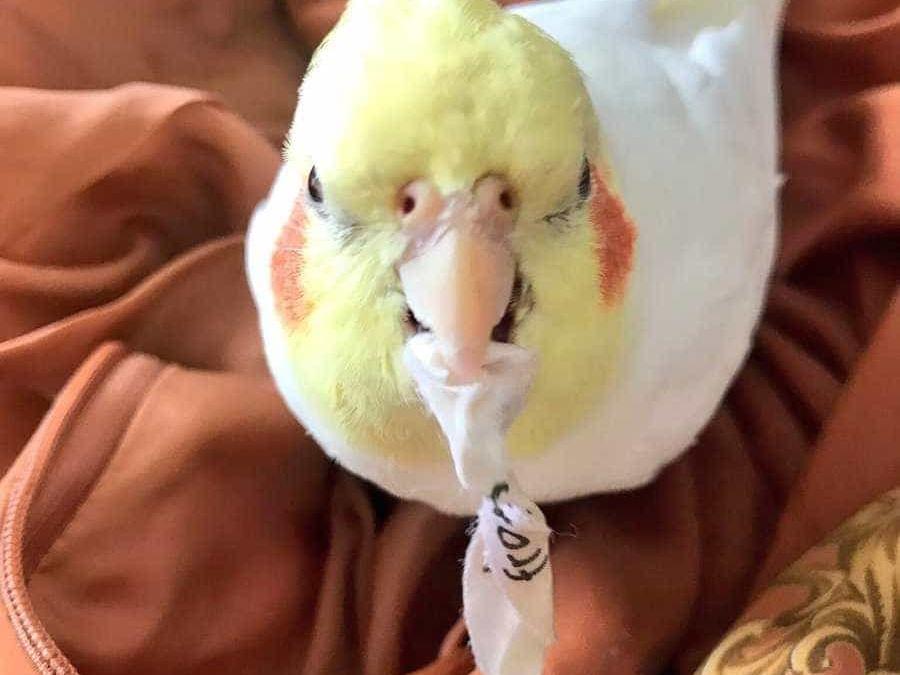 ・ルチノー(頭は黄色、頰はオレンジ、体は白色)