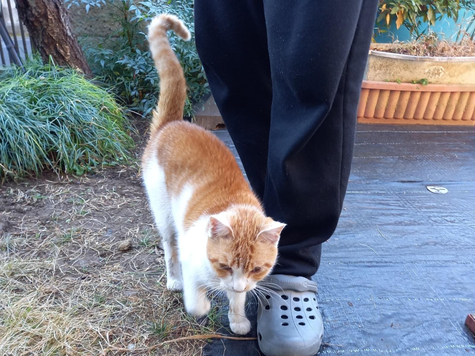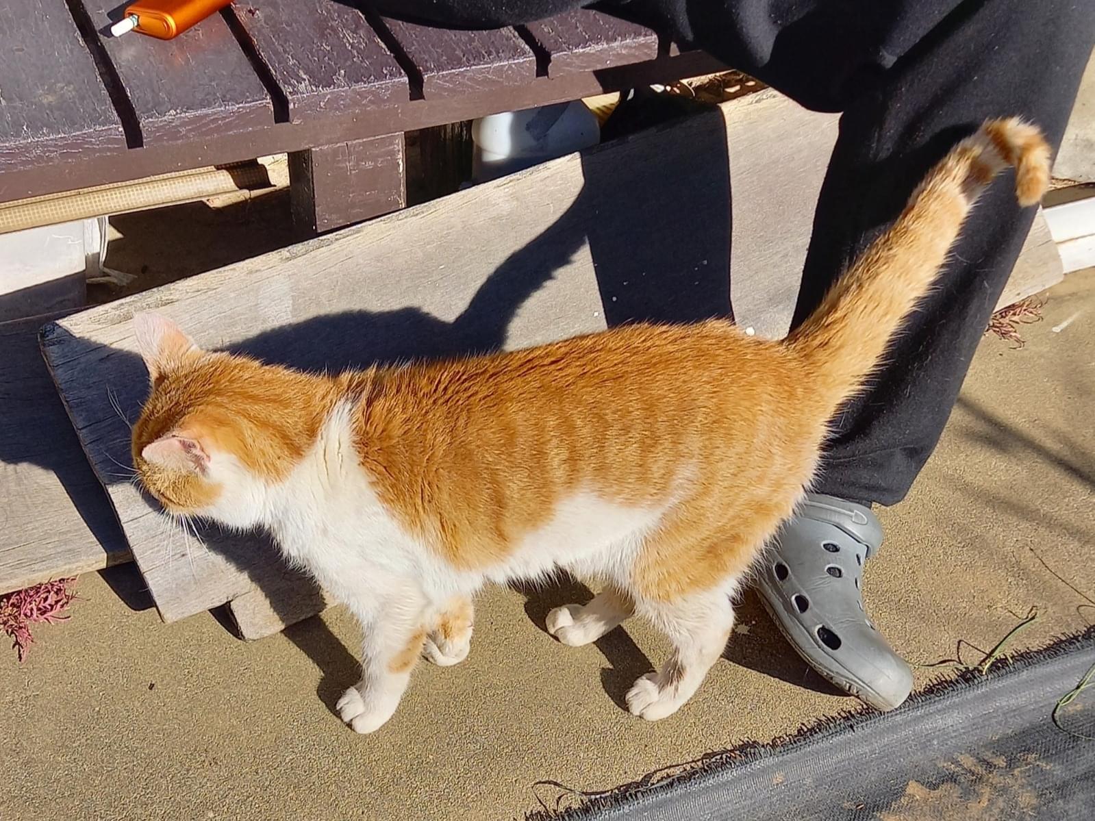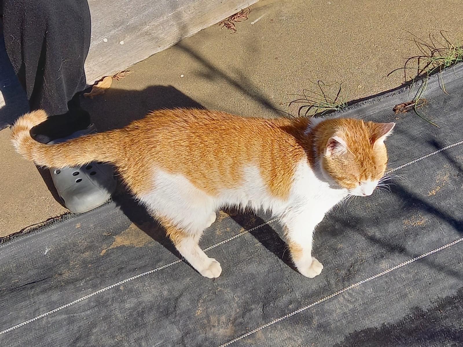 首輪は無いですが、非常に人懐っこく、すり寄ってきます。後追いしてきますが、かなり賢い子で、すでに3日経ちますが人の出入りがあっても庭から外には出ません。