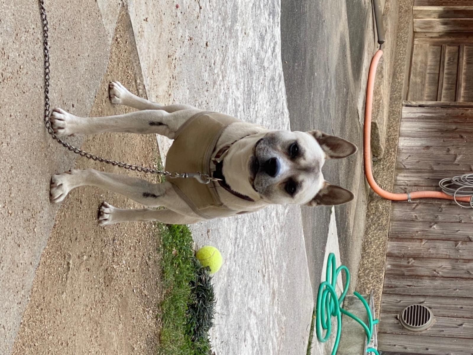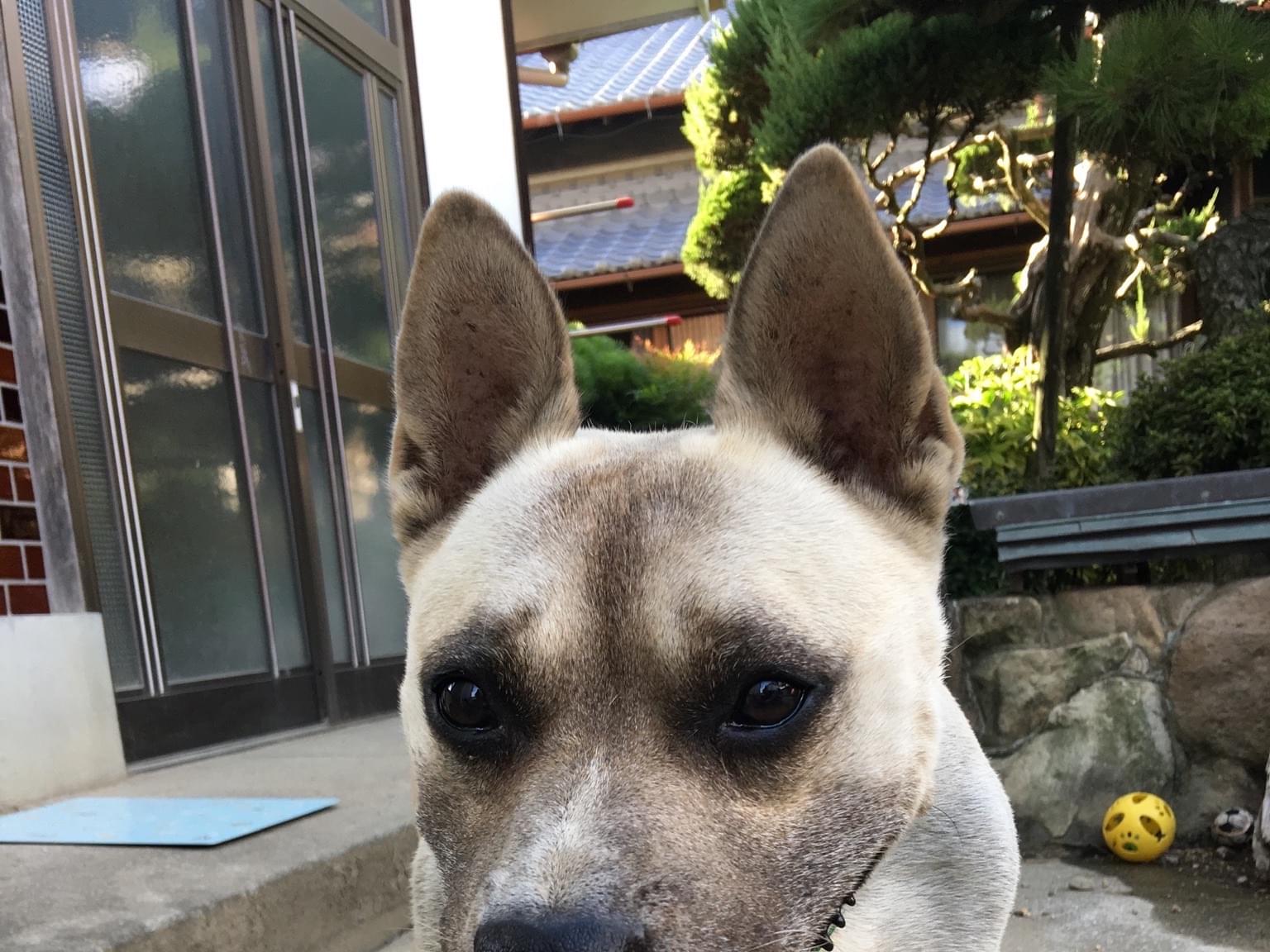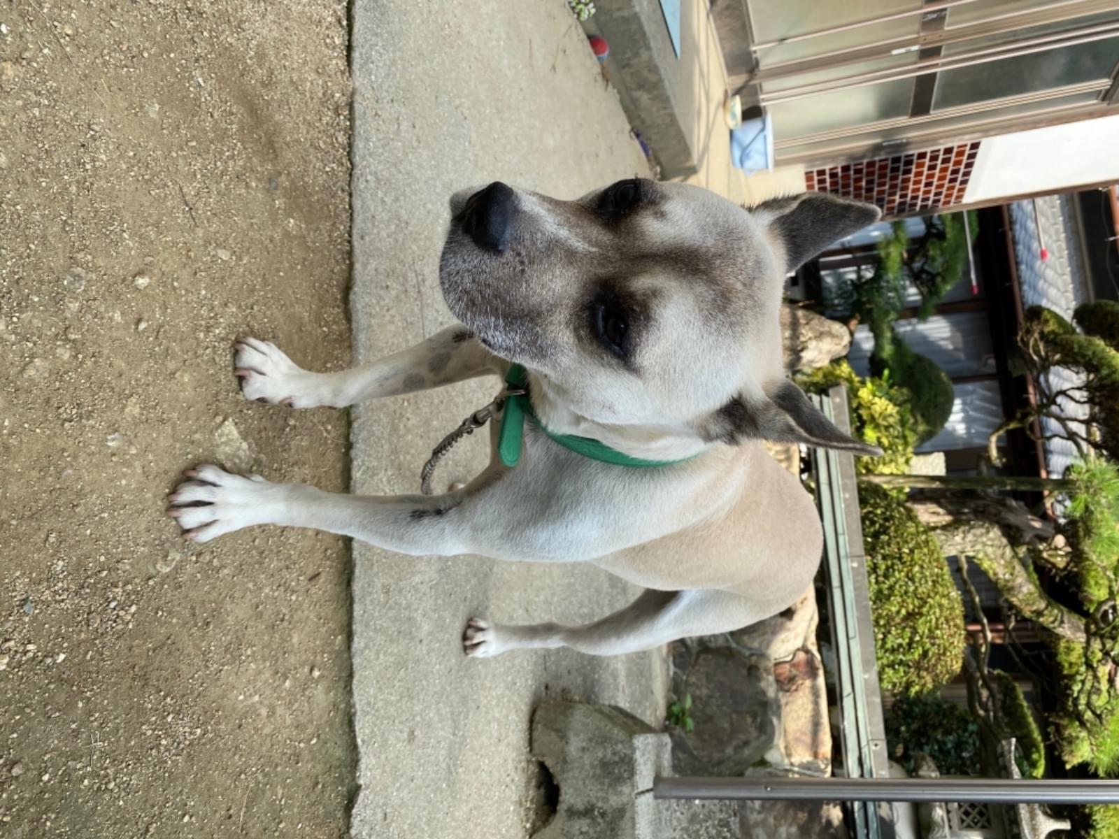 フレンチブルドックと日本犬の雑種で体格は中型犬です