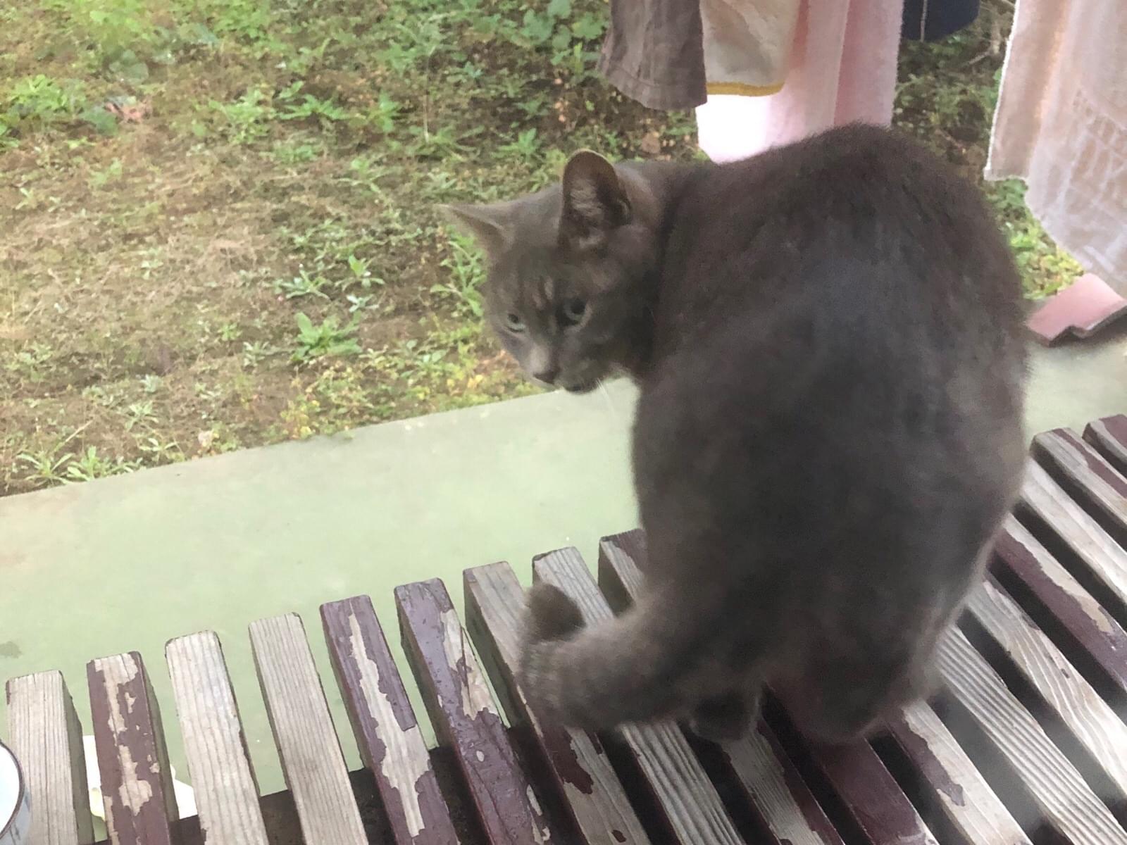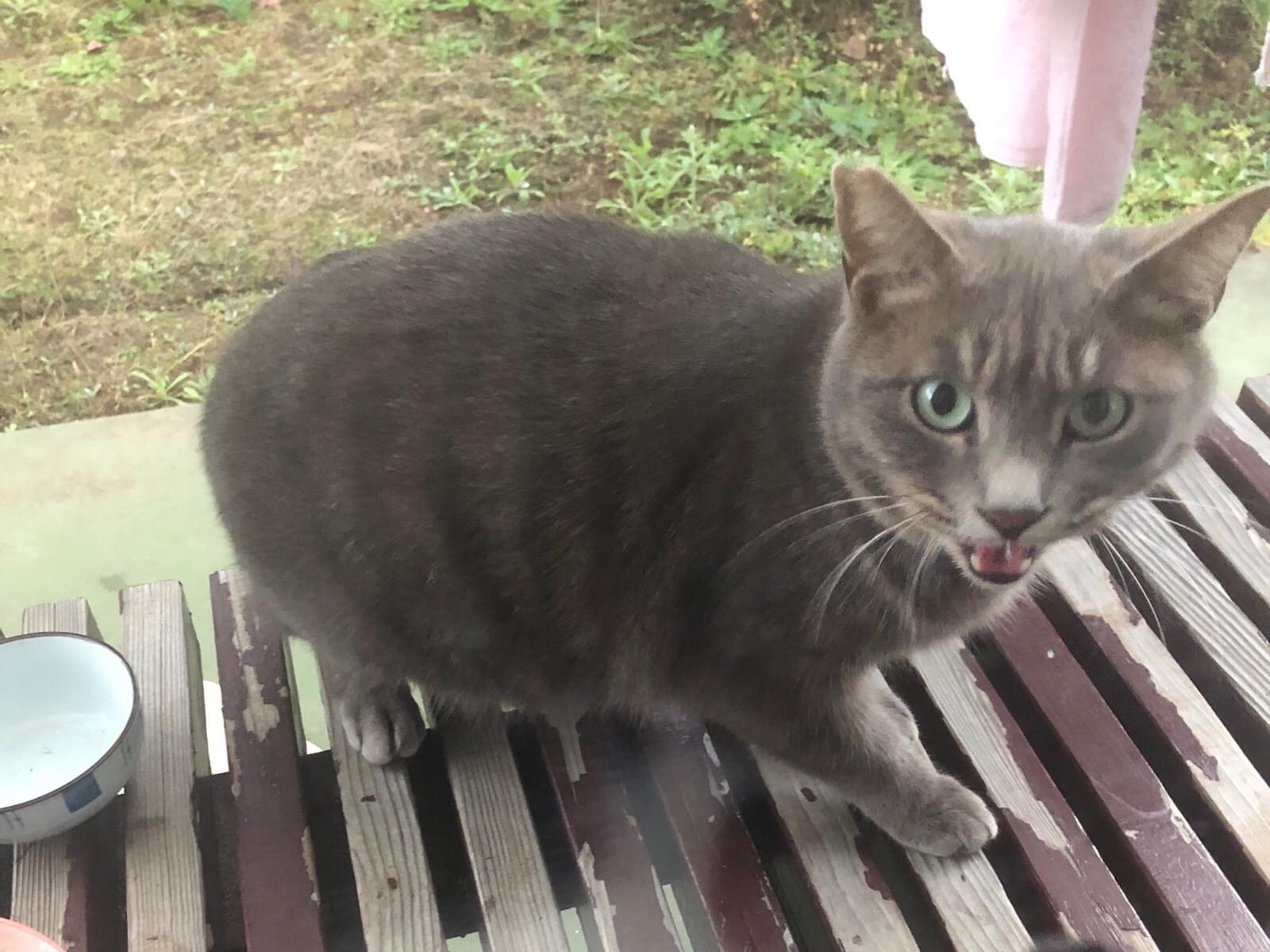 さくら耳ですが、グレーの猫ちゃんがうちの軒先によくやってきます。ゴロゴロの鳴き声がちょっと変わっていて、ブモーブモーと低めの声を出します。尻尾が鍵しっぽです。
