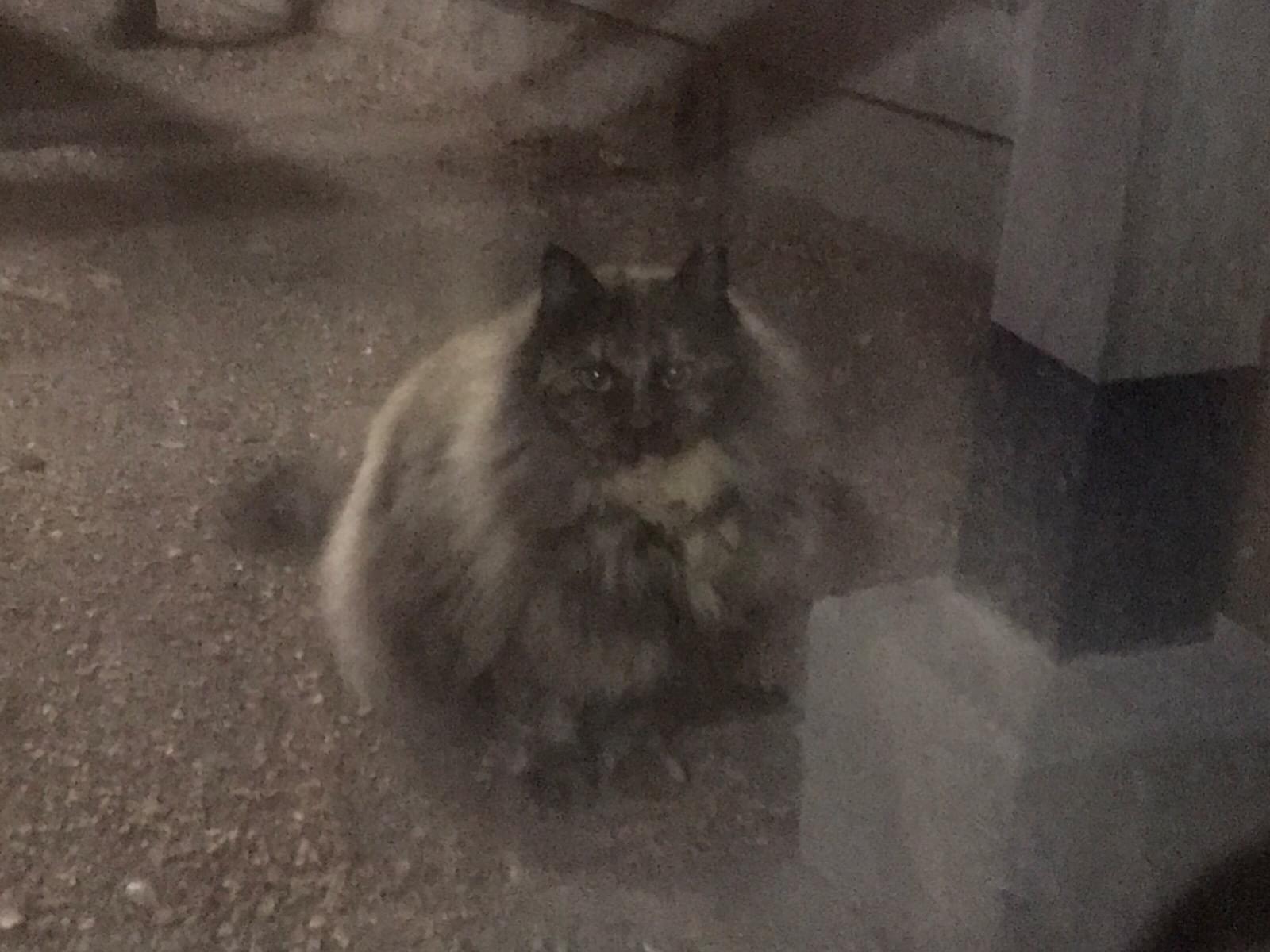 年末から近所の神社の境内に、雑種のキジトラと一緒に18時頃によく現れます。チュールあげると、近くに来ますが保護できません。首輪はしてません。わりと大きめ。獣医さんに、尋ねても患者や迷い猫の情報はありませんでした。