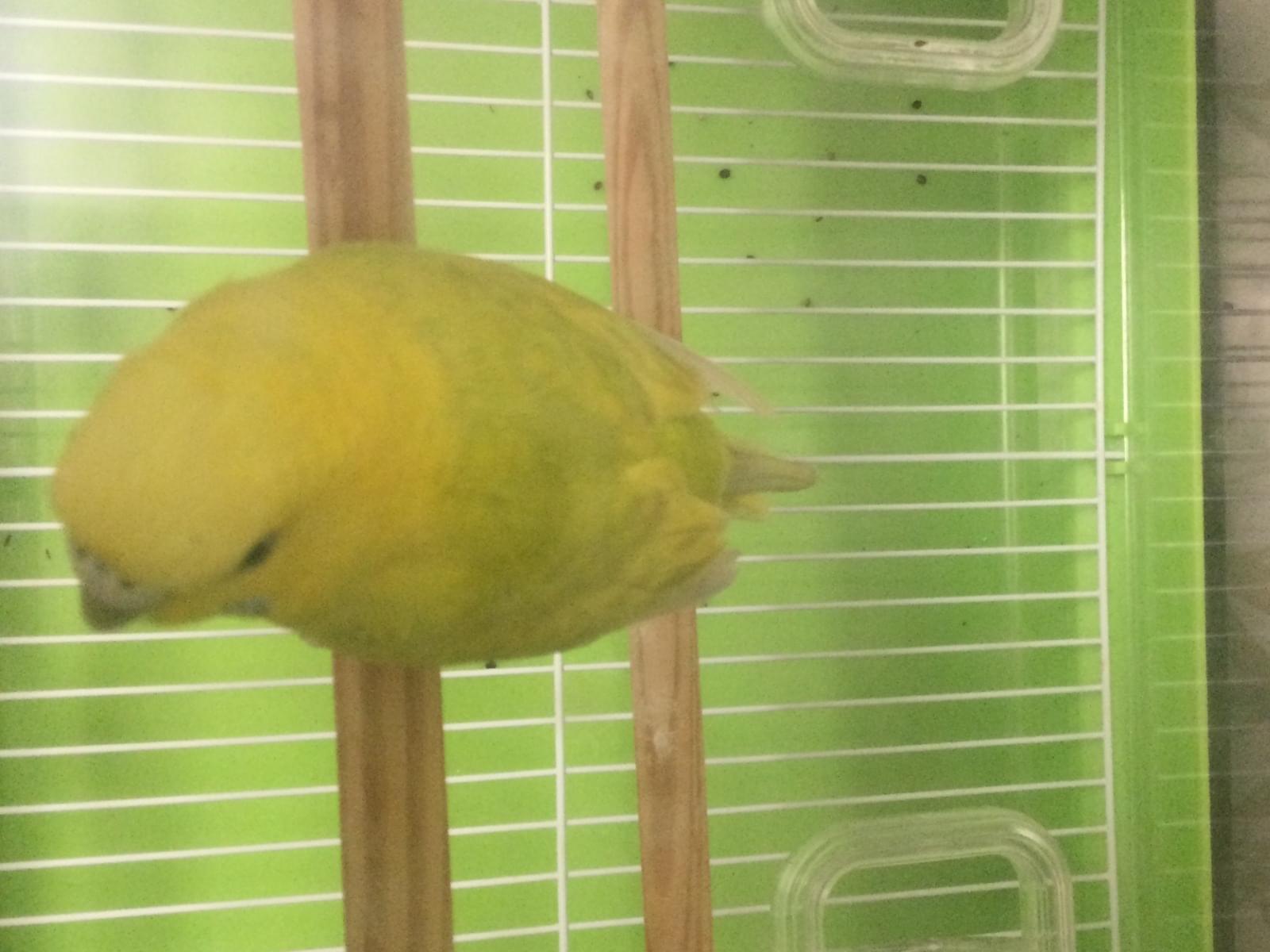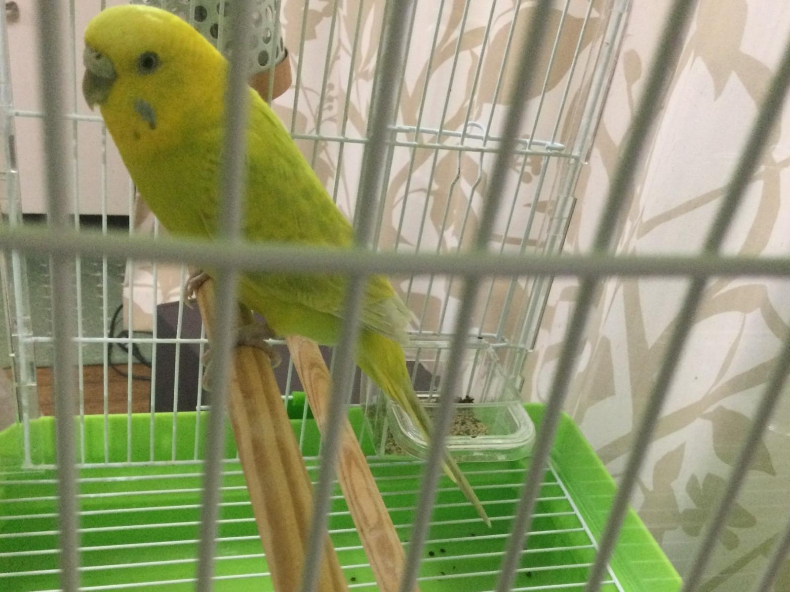 頭が黄色、体が黄緑色のセキセイインコを新宿区大久保で保護しました