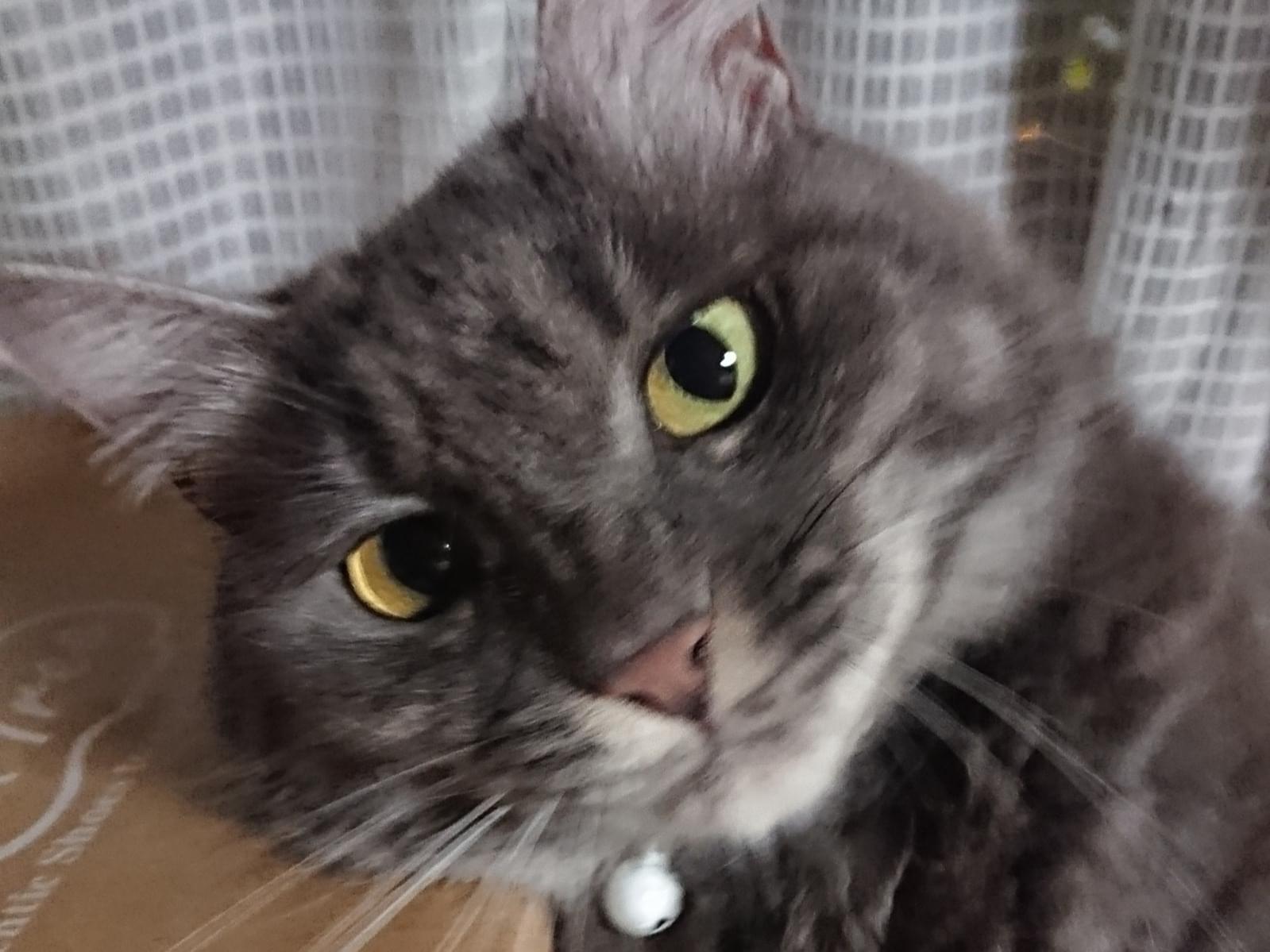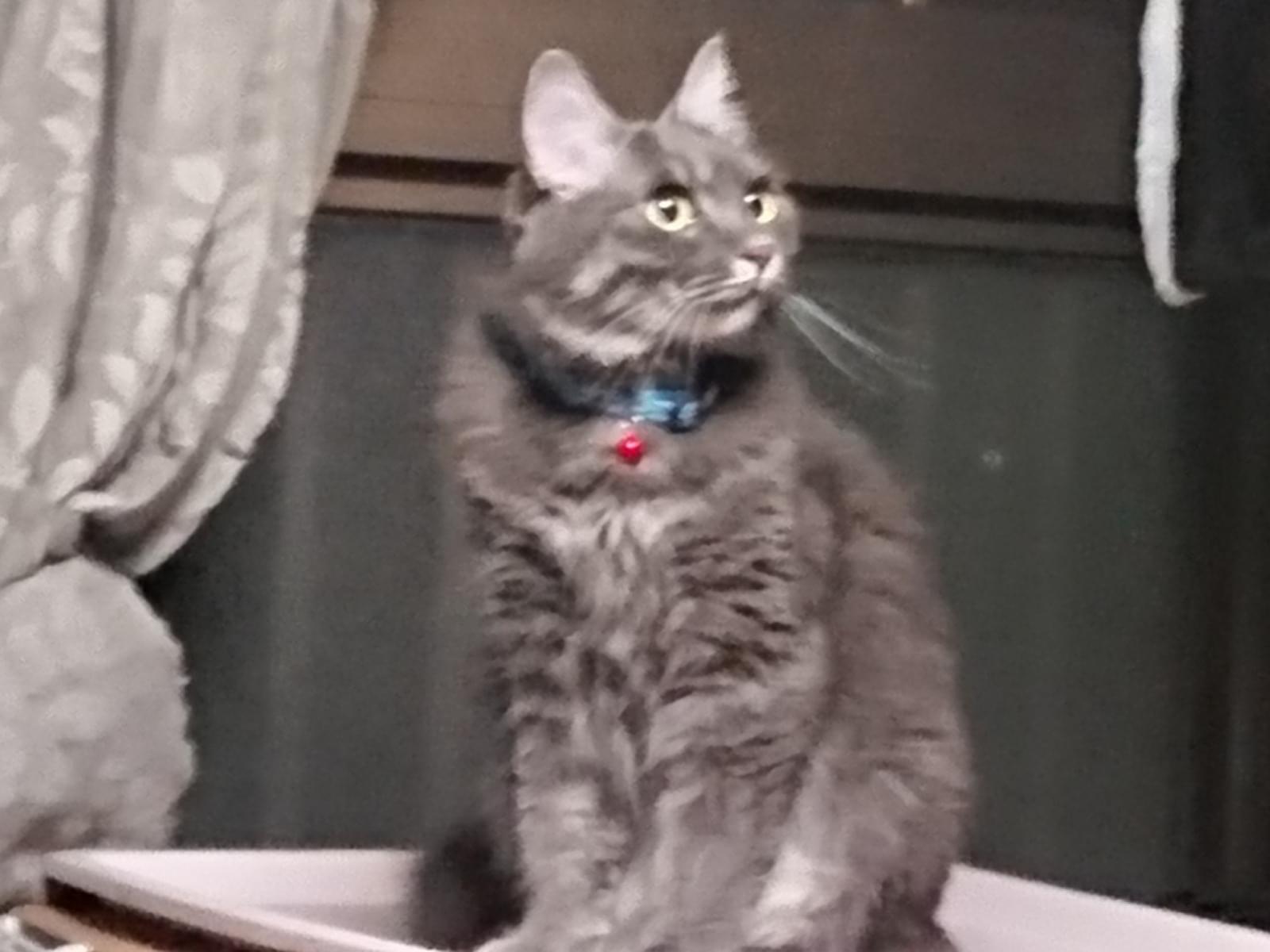 青い首輪の灰色猫を探してます
