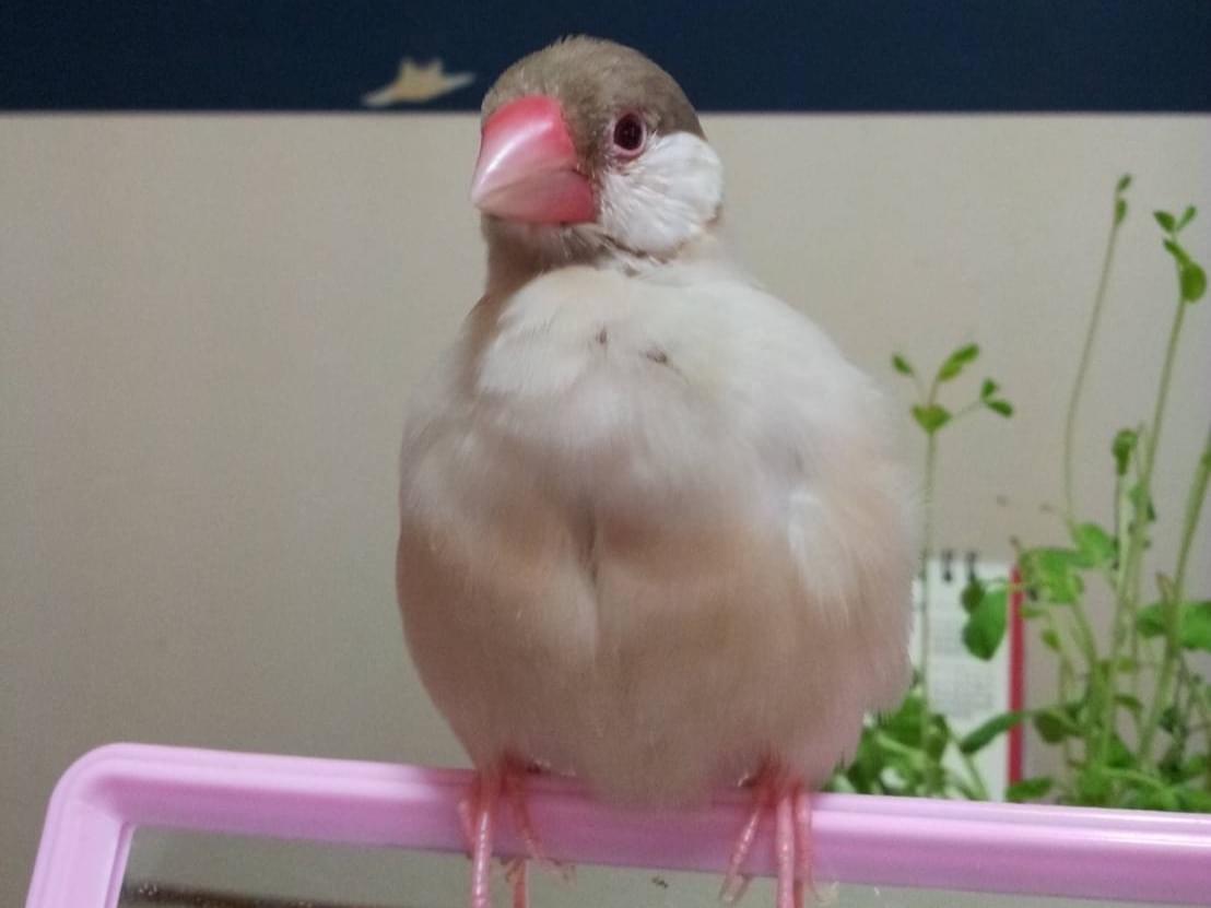 手乗り文鳥ですが臆病な性格なので呼んでも肩や手には止まったりしないかもしれません。