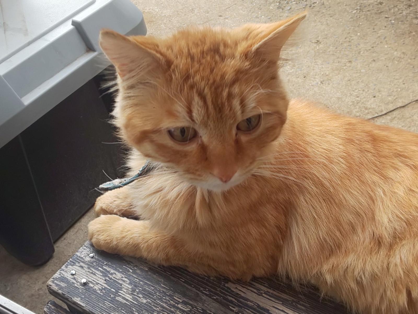 水色の首輪に「レッド」と赤いマジックで書いてあります