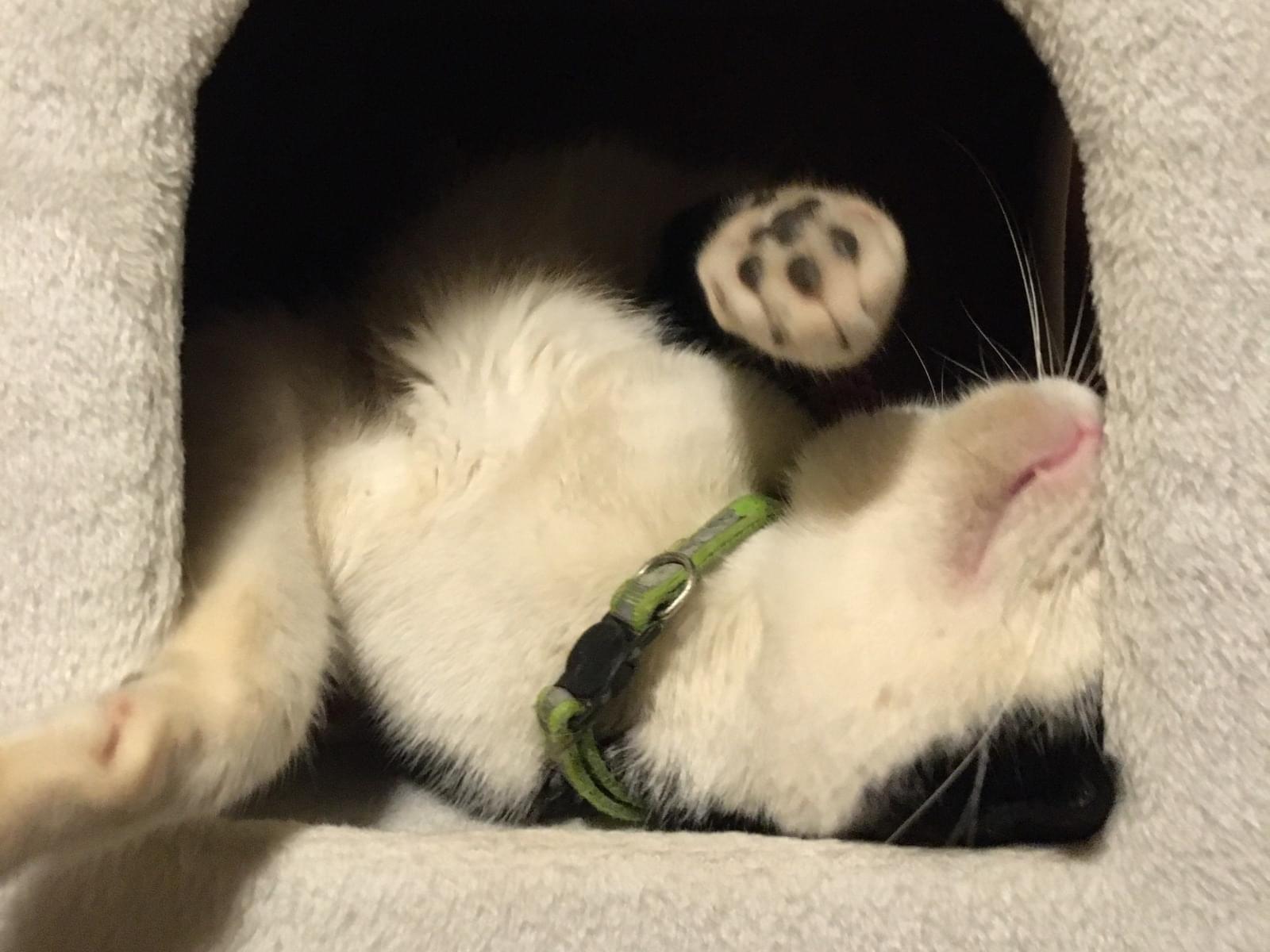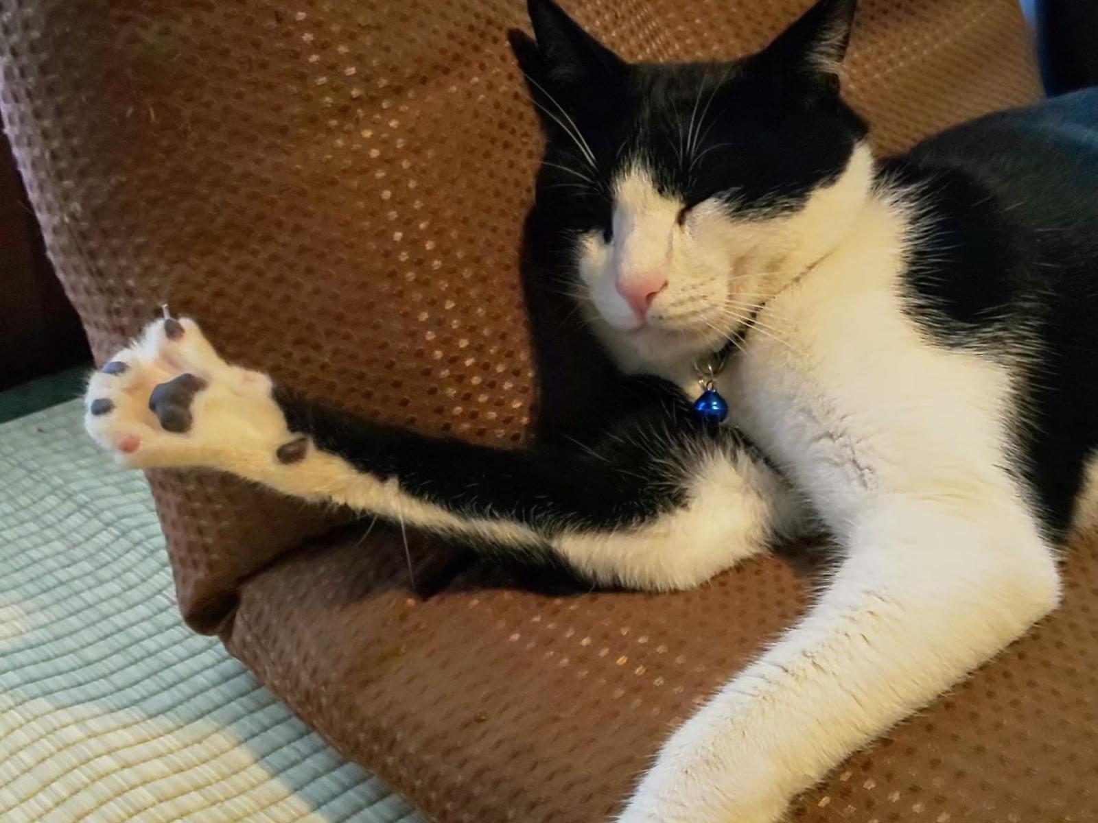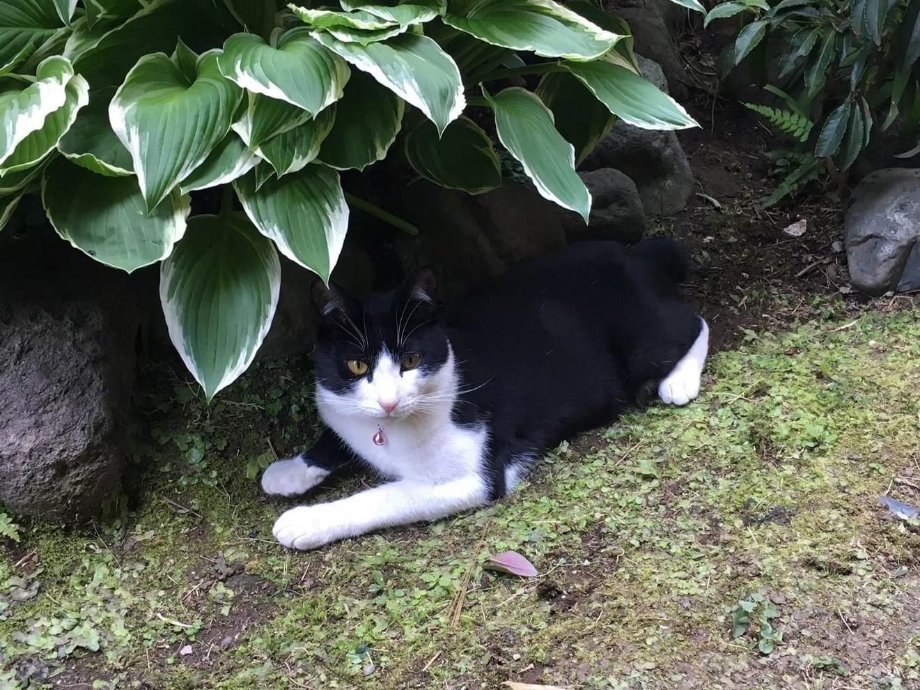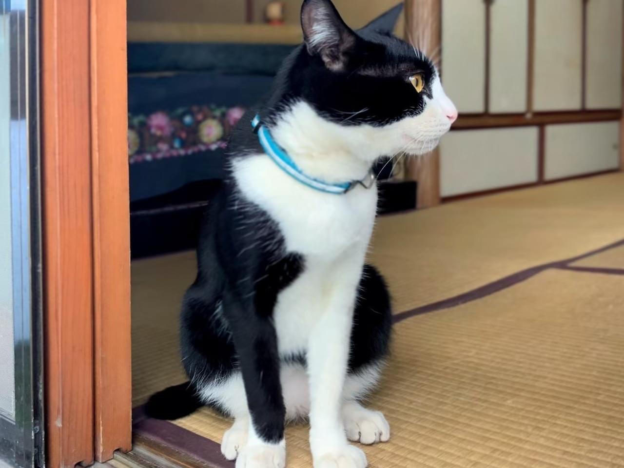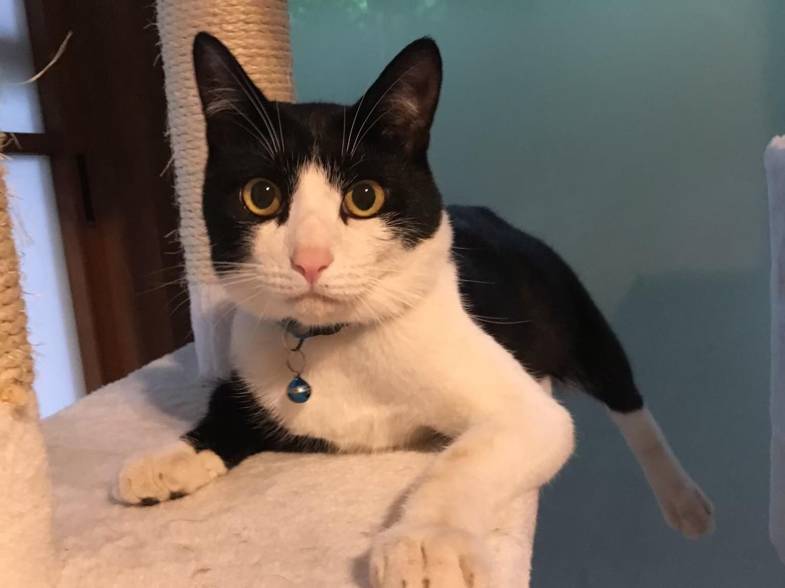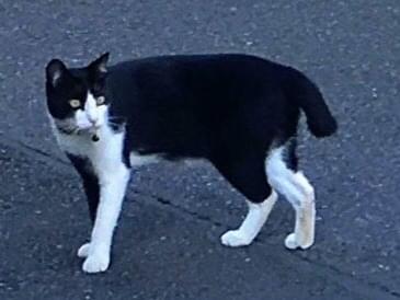 黒白のはちわれ猫を探しています。名前はもも。オス(去勢済み)。鼻がピンクで右前足が黒。左前足が白です。しっぽは黒で直角に曲がっています。性格は、おっとりした感じで愛嬌あります。ちょっと怖がりです。