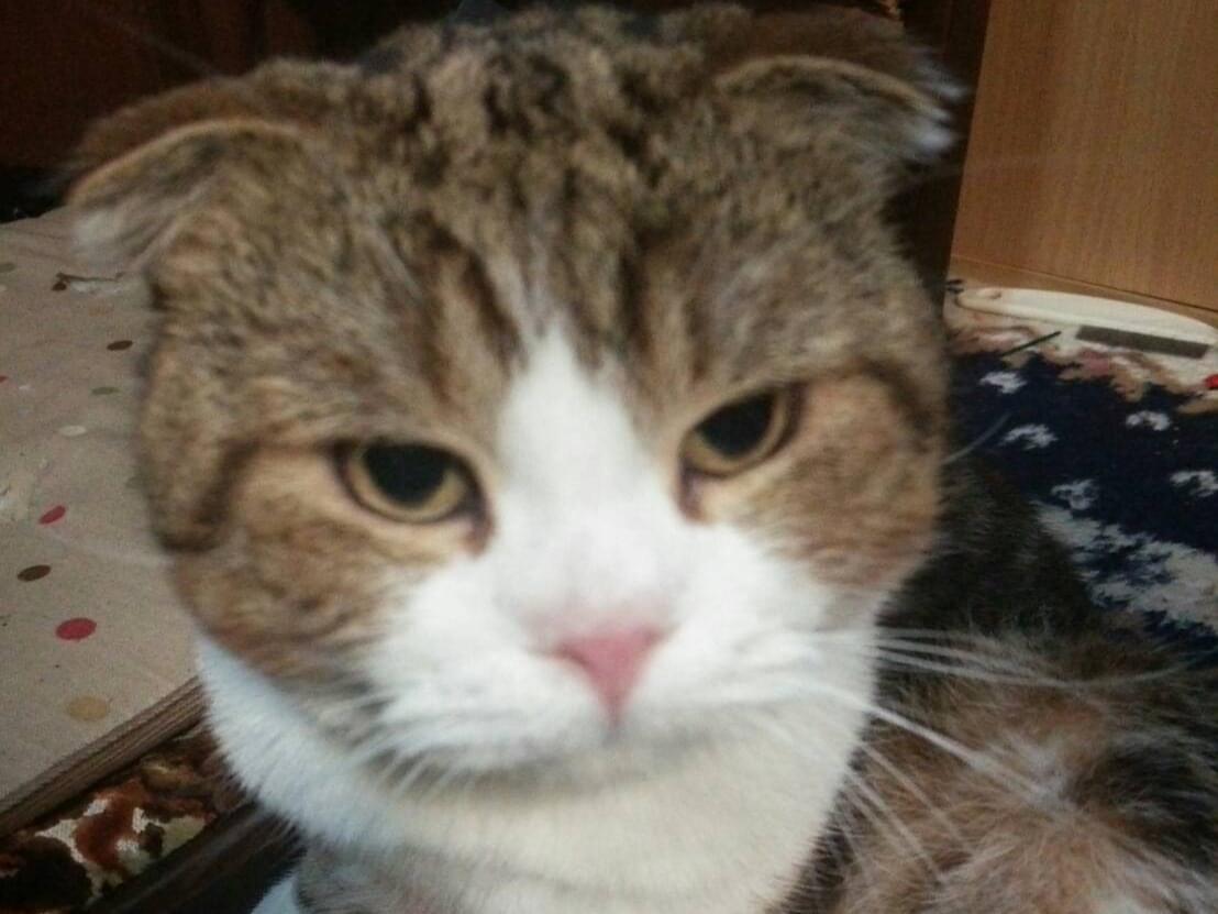 毛の色が茶色と白のスコティッシュフォールドを探しています!