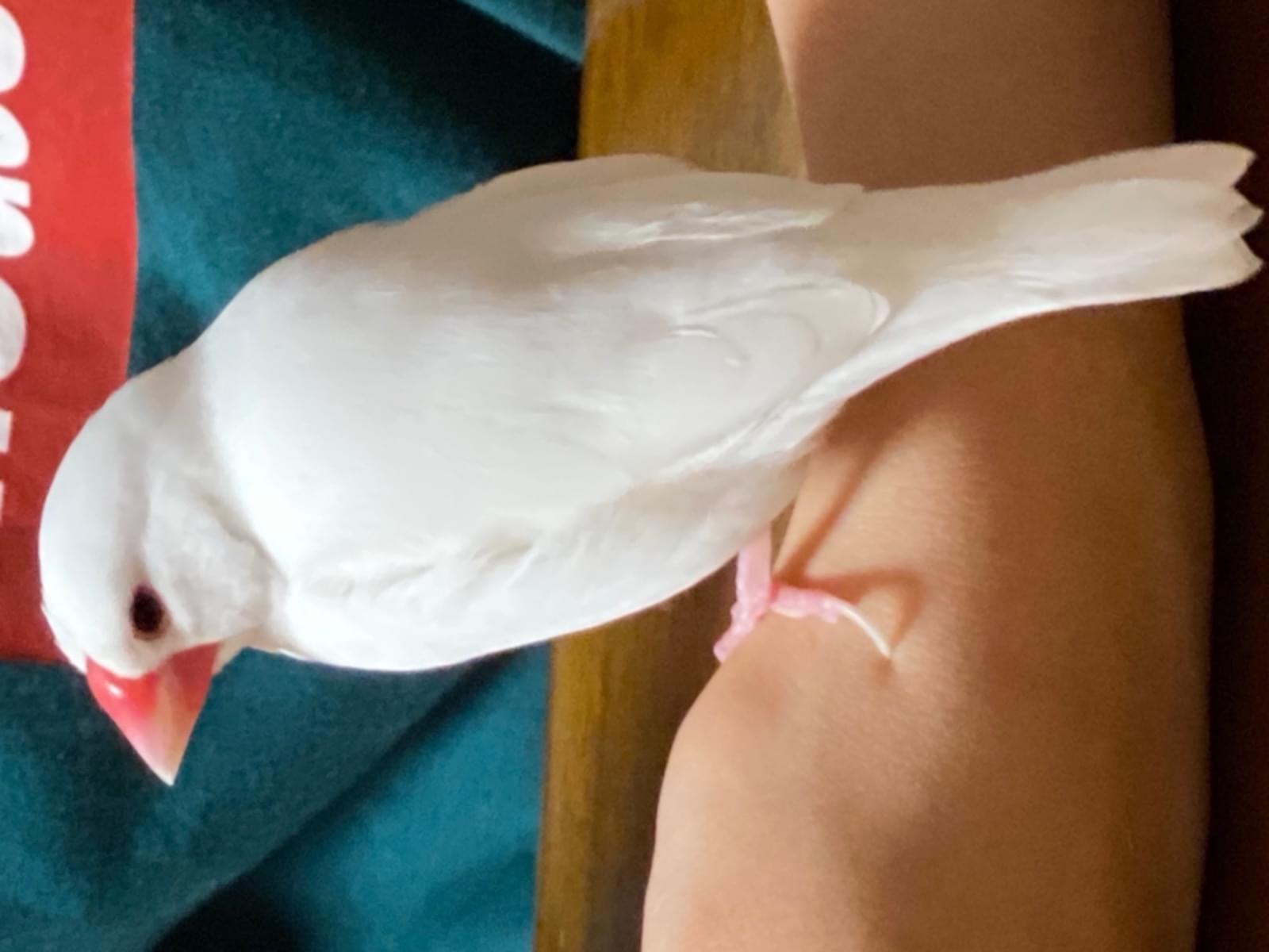 ちょっと臆病な性格で、怖いと感じてる時は、とまっている指をギュッと握って来ます。