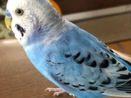 顔が白、身体が青、尾羽が紺で、首と後頭部に薄い紫がはいっています。