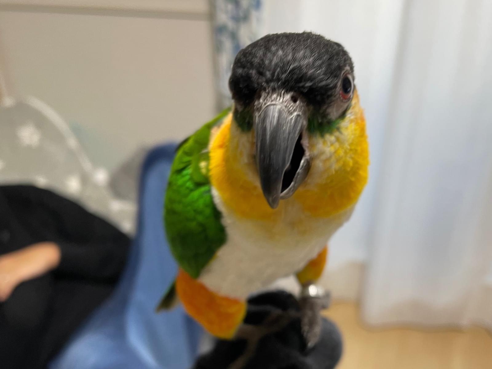 人には慣れています。飼い主の姿が見えなくなると大声で鳴きます。逃げた直後近場を探しましたが夜だったせいもあり姿が確認できず、今朝も探しましたが名前を呼んでも返事がありません。雨で寒いだろうととても心配しています。りんごとひまわりの種が大好きです。左脚にシルバーの足環付いてます。