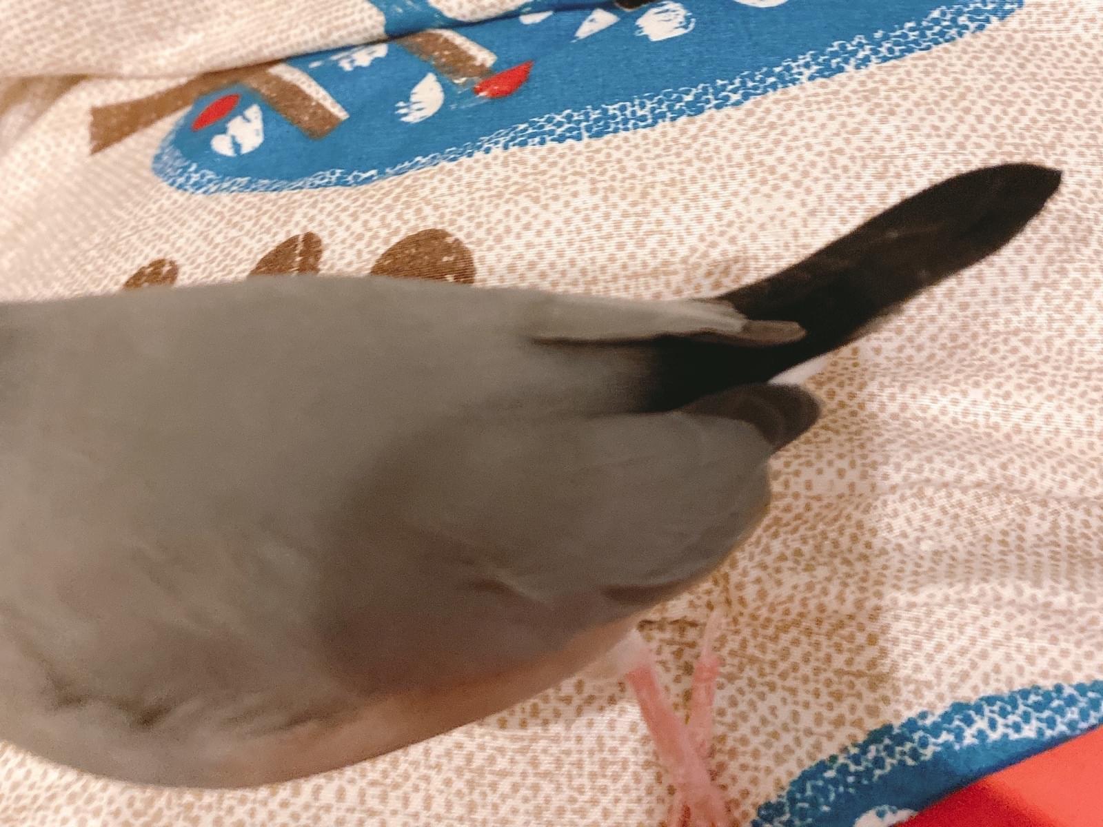 綺麗にグレーとお腹周り薄紫でどちらも白い羽のまじりはありません。