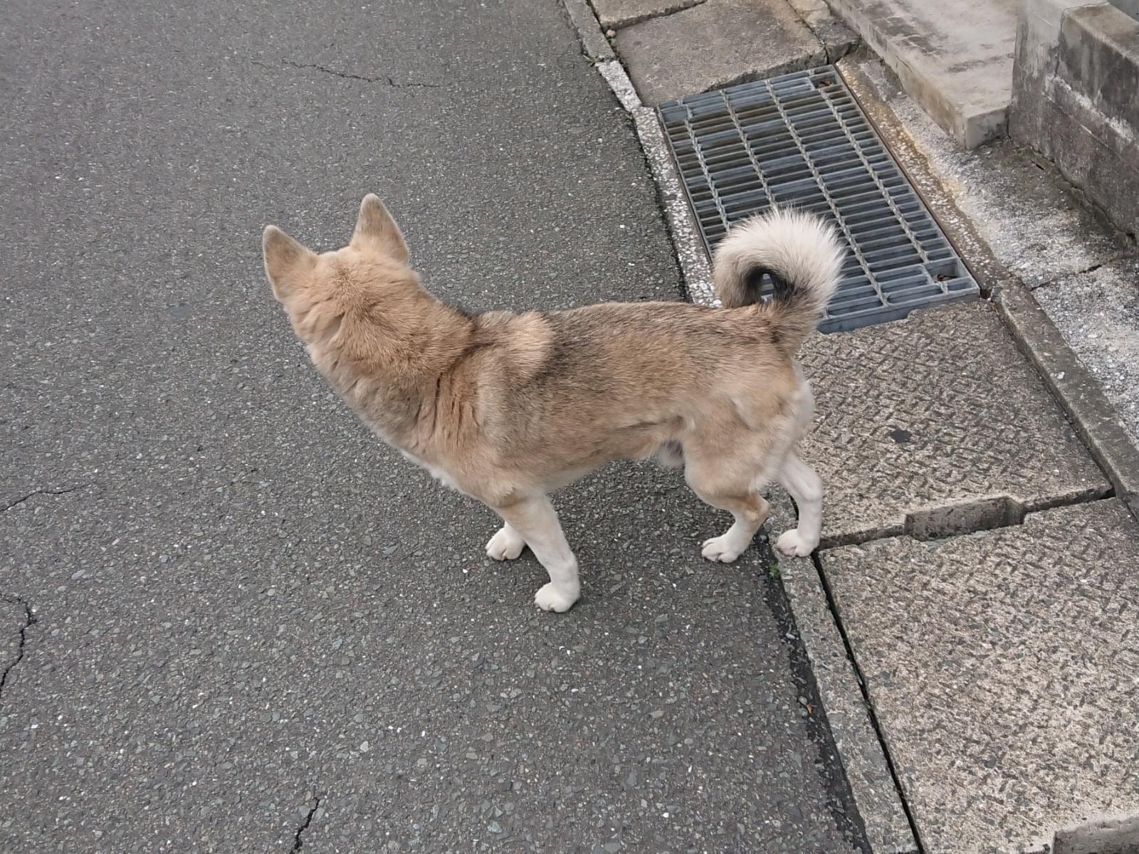 見た時は歩いているだけで、走ったり吠えたりはなかったです。声をかけると立ち止まりましたが、その後すぐに伊田駅方面に立ち去りました。