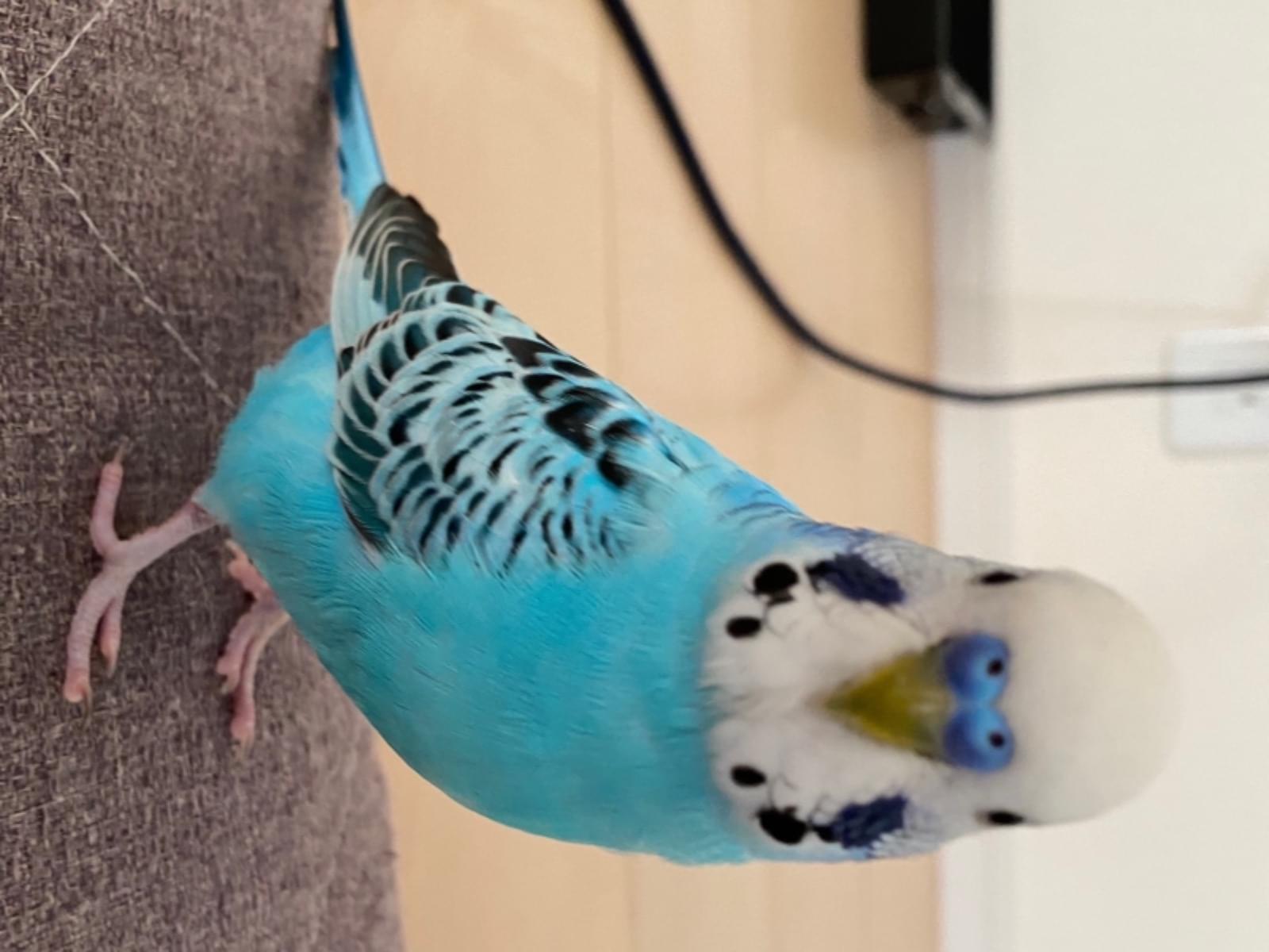3/4夕方足利市から太田市方面へ飛んでいきました。セキセイインコ鼻が濃い青で羽根は水色オスです。肩に乗るのが好きでおしゃべりします。