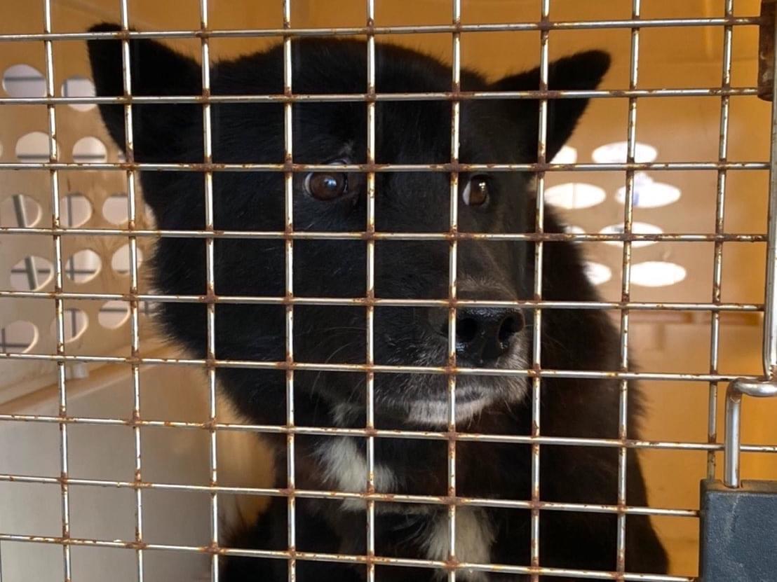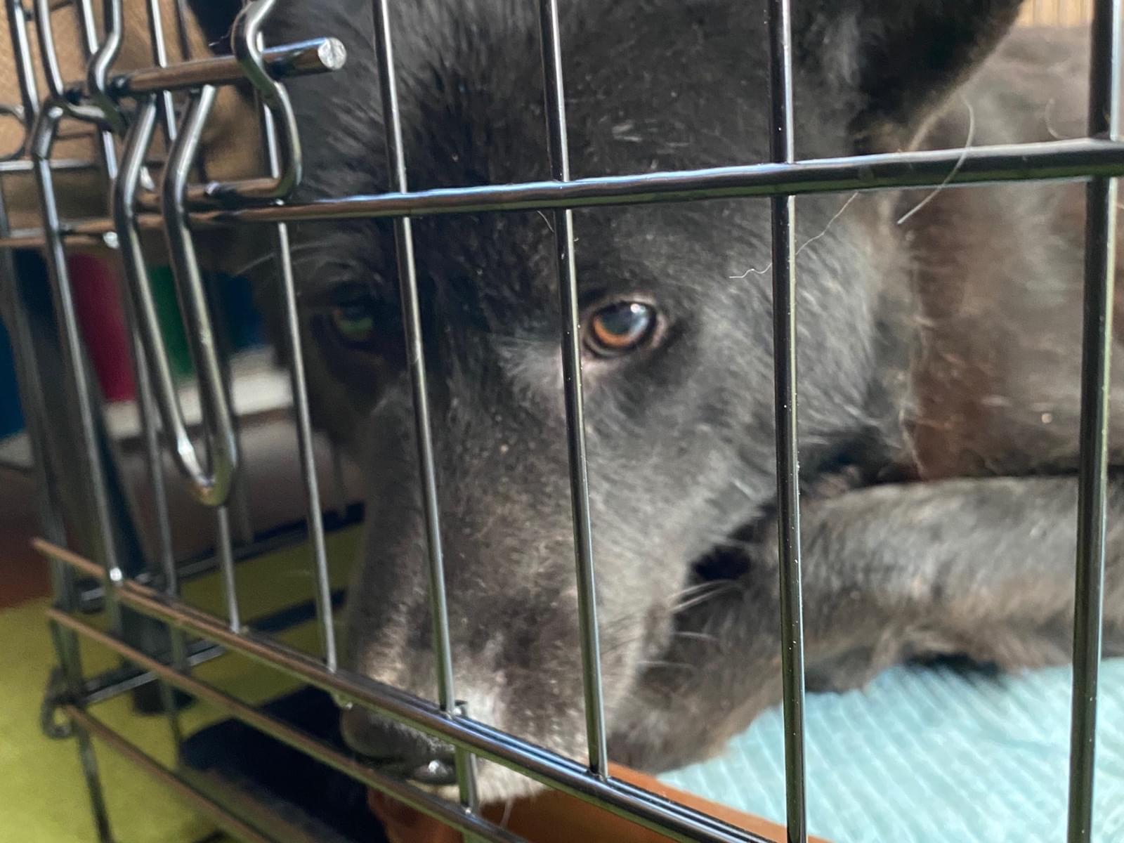 栃木県真岡市で保護犬が迷子です。大型犬、黒、口元と首から胸にかけて白の一本線。土地勘なし。