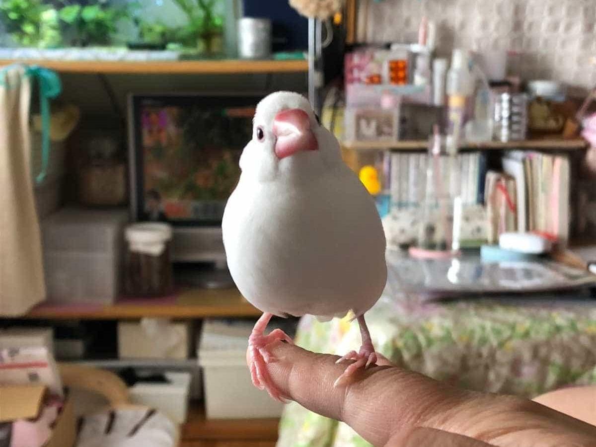 手乗り文鳥です。25gくらいの小柄な白文鳥です。