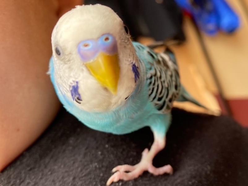 体が小さめの青色の体でお顔は白く一緒にいたオカメインコの鳴き真似でクィー!こつぶ!としゃべります