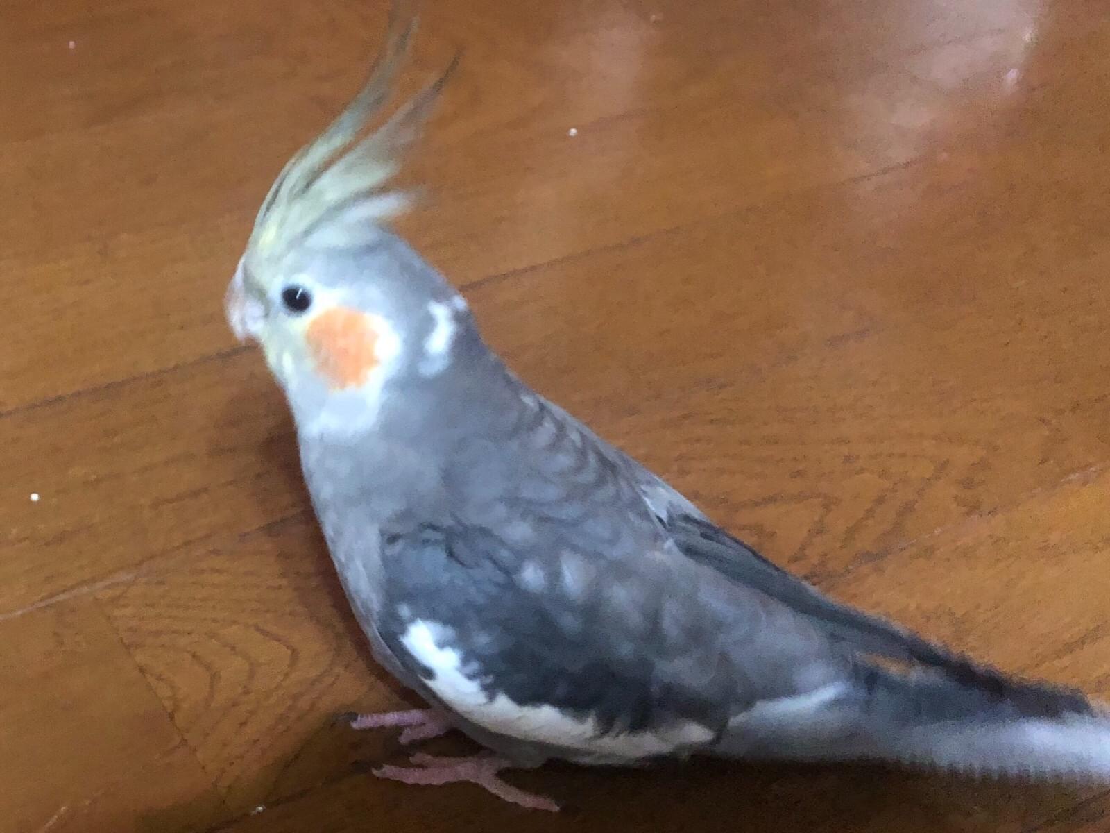 自分の名前シーちゃん、おはよう、おいて、鳩ぽっぽがはなしできます!トサカは黄色、ほっぺは、オレンジで、後体は、グレー羽には、白が混ざってます!肩に乗るより、頭に止まることが多いです。とても、人馴れしています。
