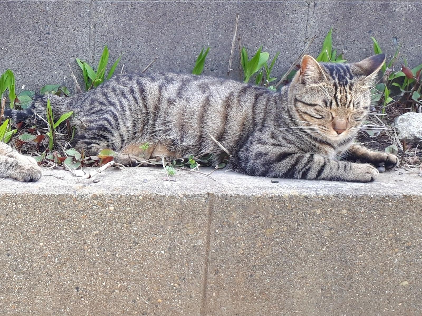 キジトラでくの字に曲がった折れしっぽが特徴です。