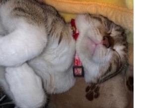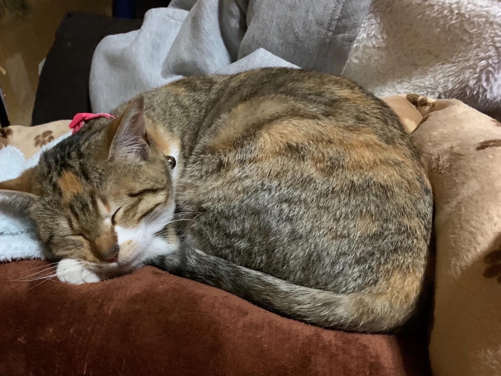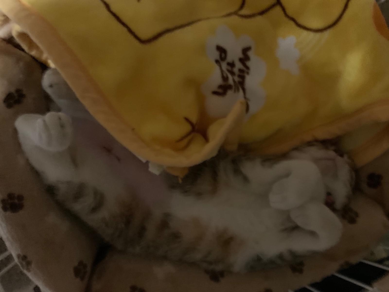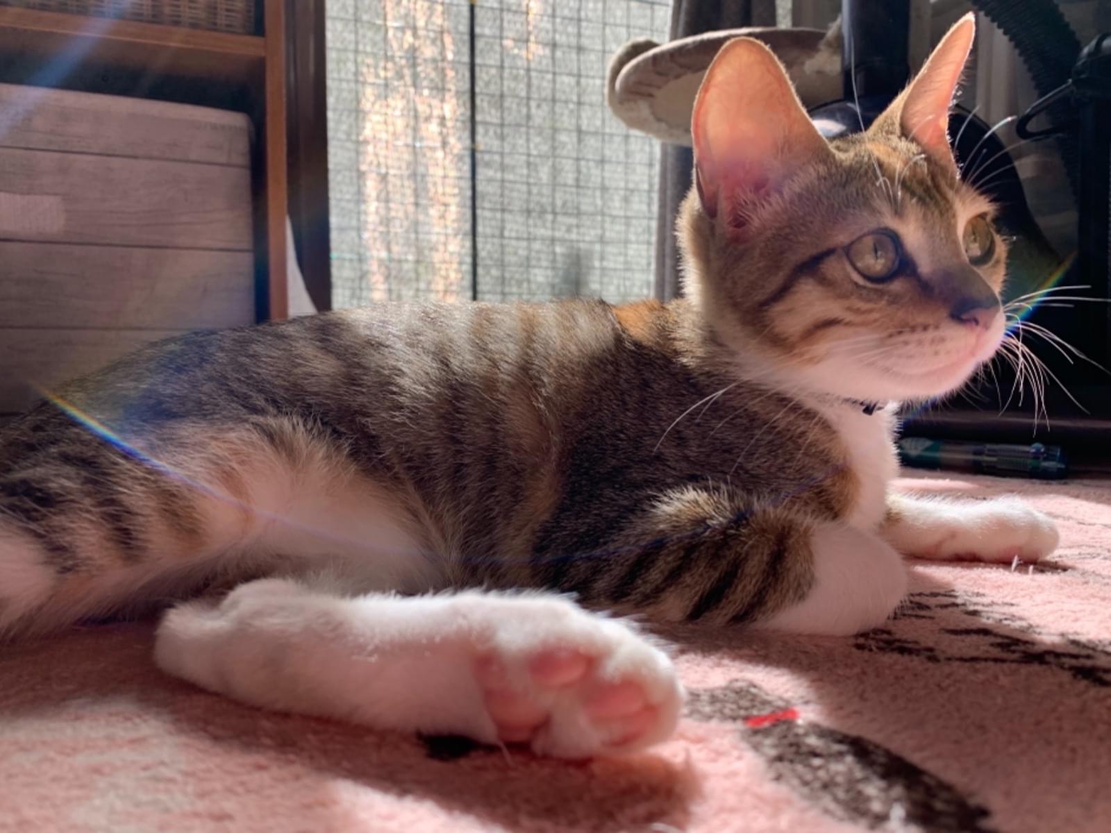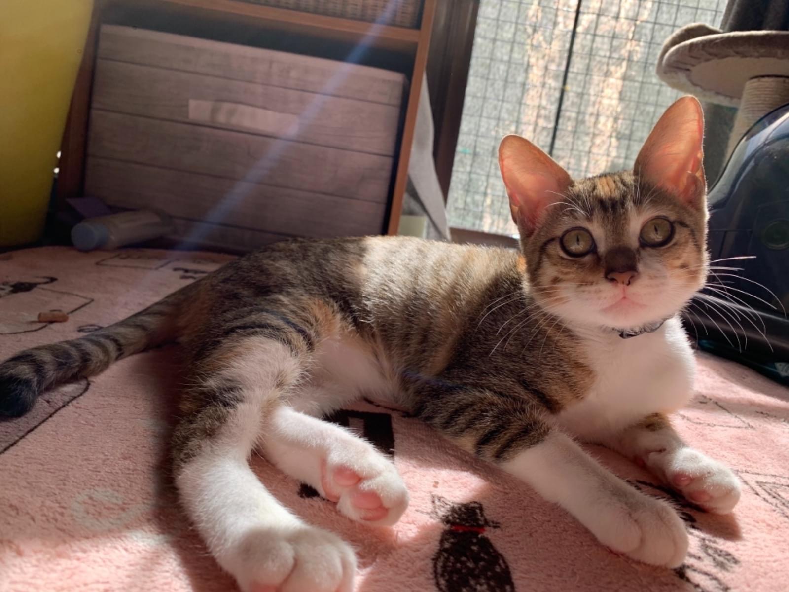 黄土色の毛が生えており、目の先に黒くアイラインがひかれているみたいな柄でしっぽの先が少し曲がっています。そして最近避妊手術をしたばかりなのでお腹に手術痕があります。いなくなる前はピンクの花柄で