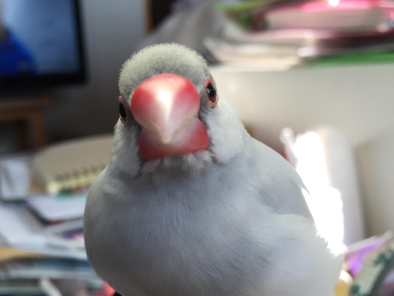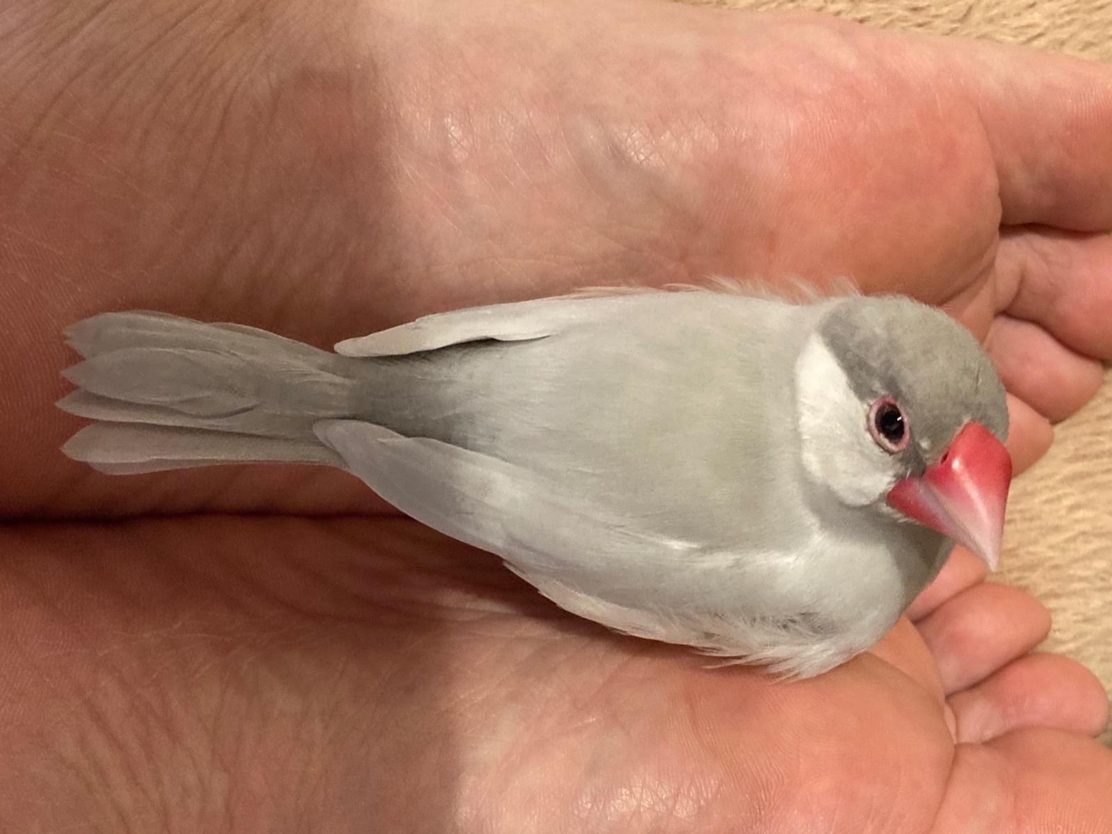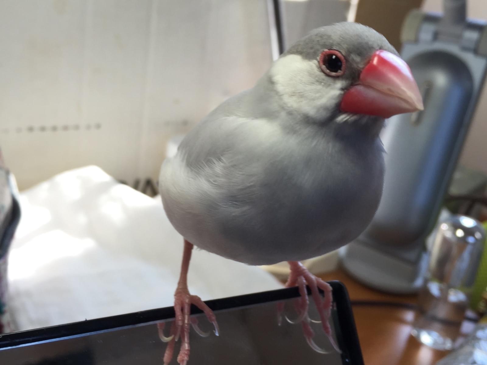4月19日の朝10時ぐらいに家から飛んでいきました。色はグレーで頭としっぽが少し濃いめのグレーです。くちばしは赤でくちばしの先が少し白っぽいです。「く-うたん」や口をチャッチャッと鳴らすと、キャンキャンやくっくと鳴いて近づいてきます。拍手や手を擦る音も大好きです。えさは殻付きのカナリヤシードが大好きです。