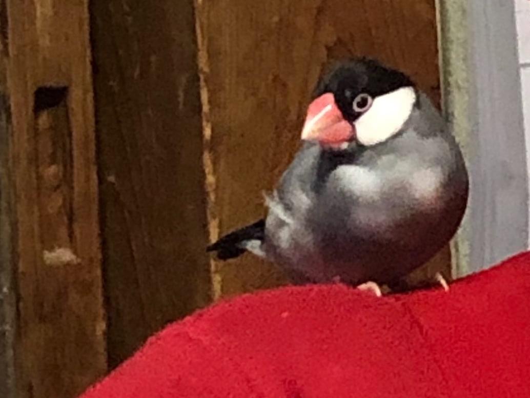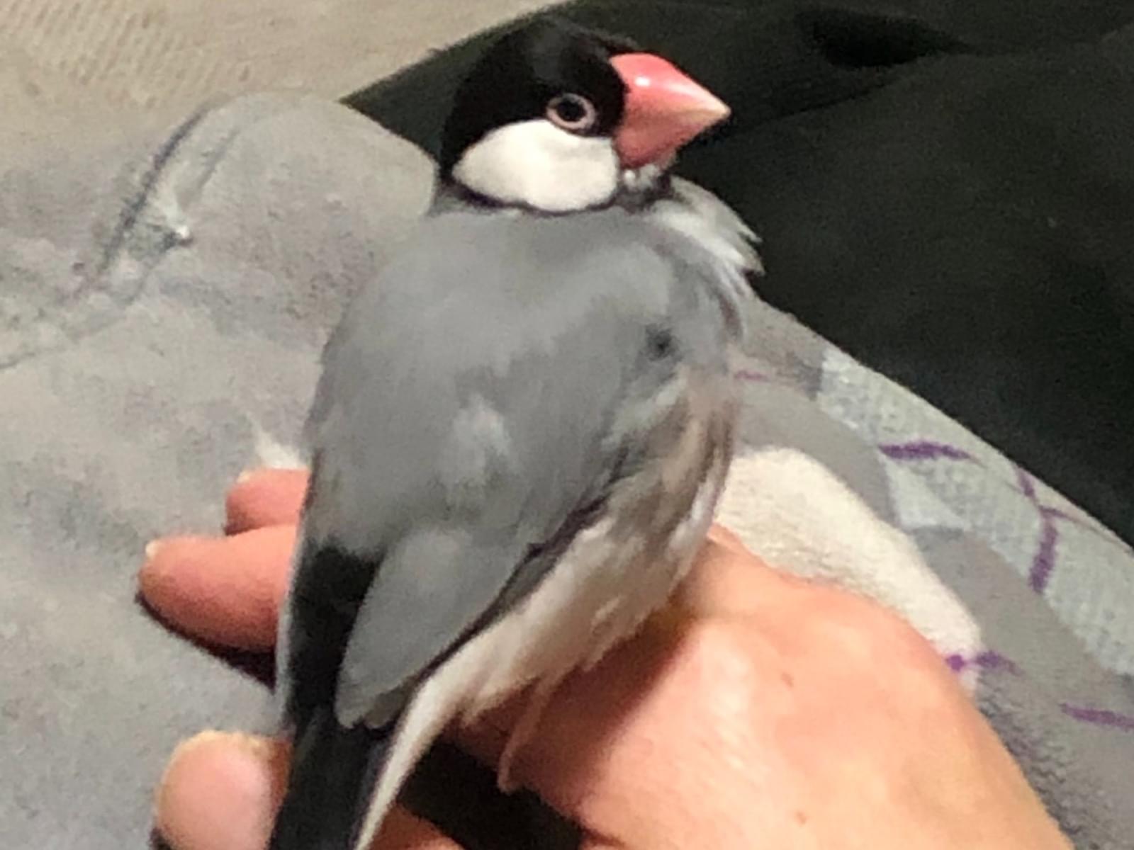 手乗り文鳥で、家族だれでも肩にずっと乗っているくらいなついています。