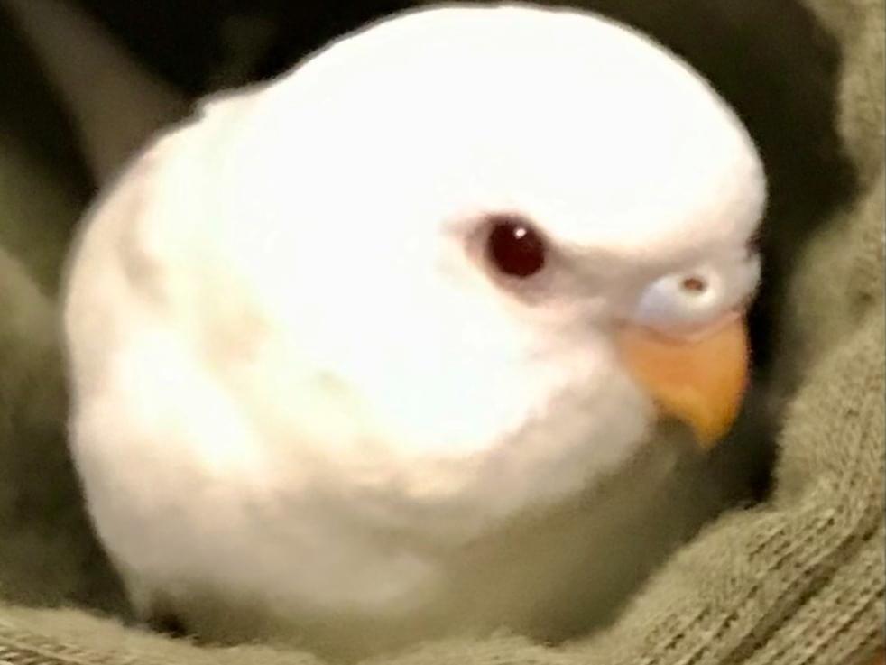 白色の毛で目が赤色のセキセイインコを探しています