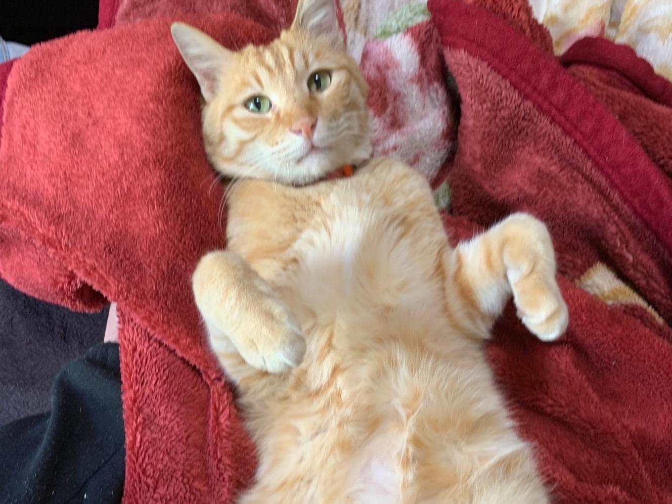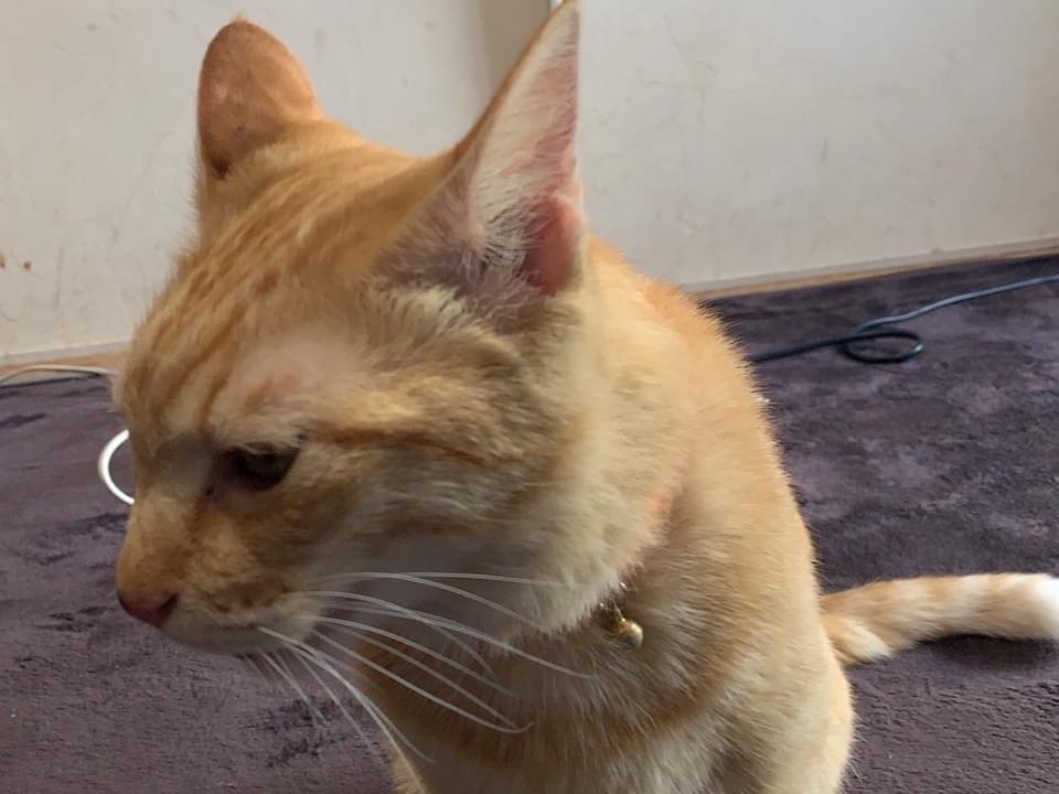 左側の牙が欠けている茶トラ猫のルイ君をさがしていす。