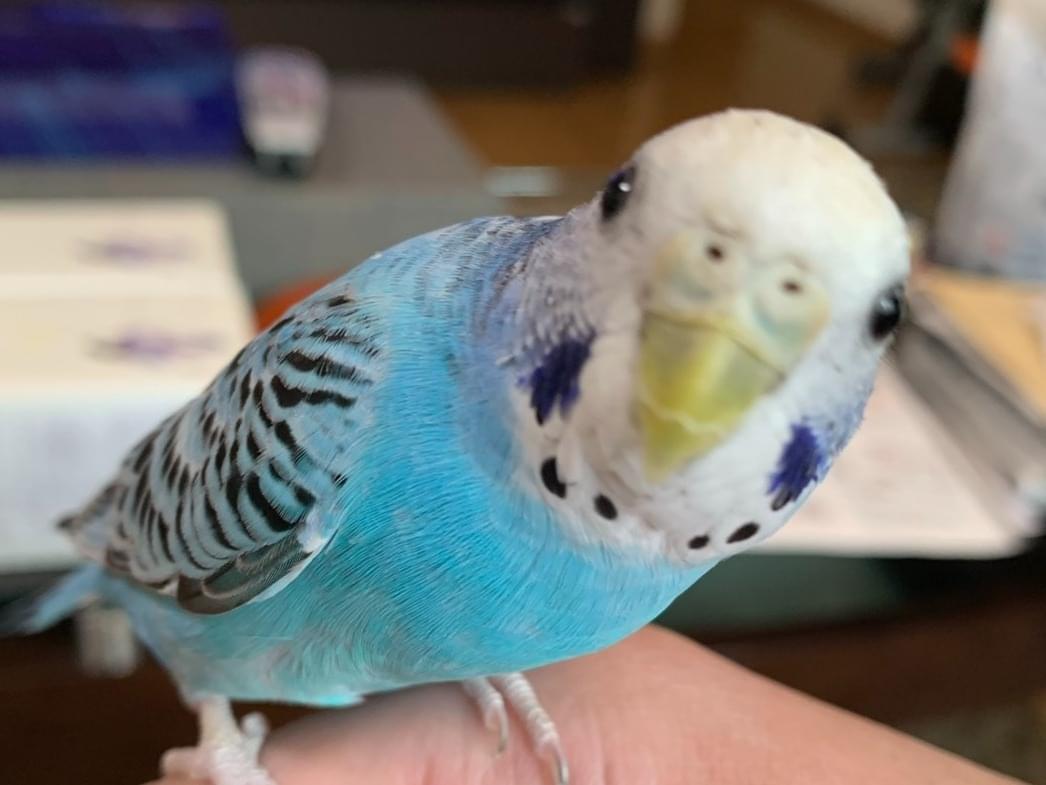 家に来て4ヶ月、人が大好きで、常に人にかまって欲しい甘えん坊なインコでした。いつも大きな声で鳴いていて、とても賑やかな子です。