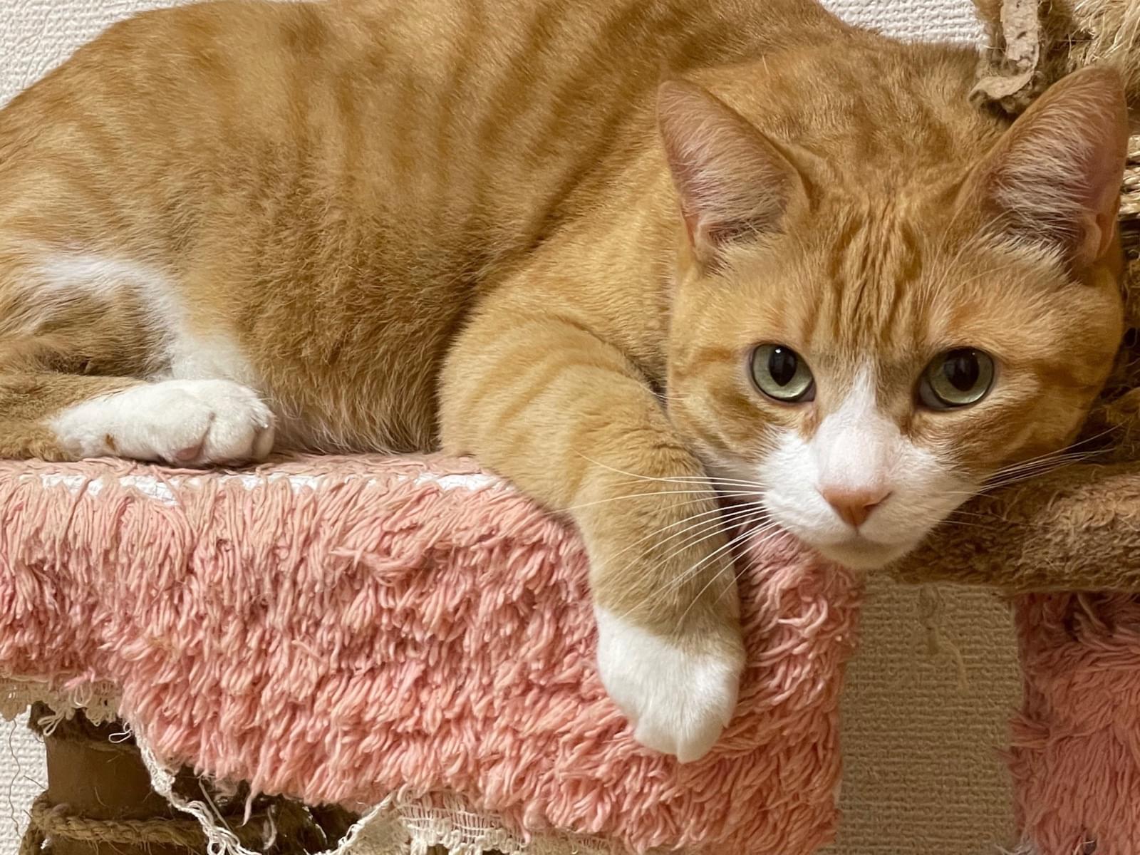 鼻から首お腹と足が白、背中は薄い茶トラ模様で6才のオスです。