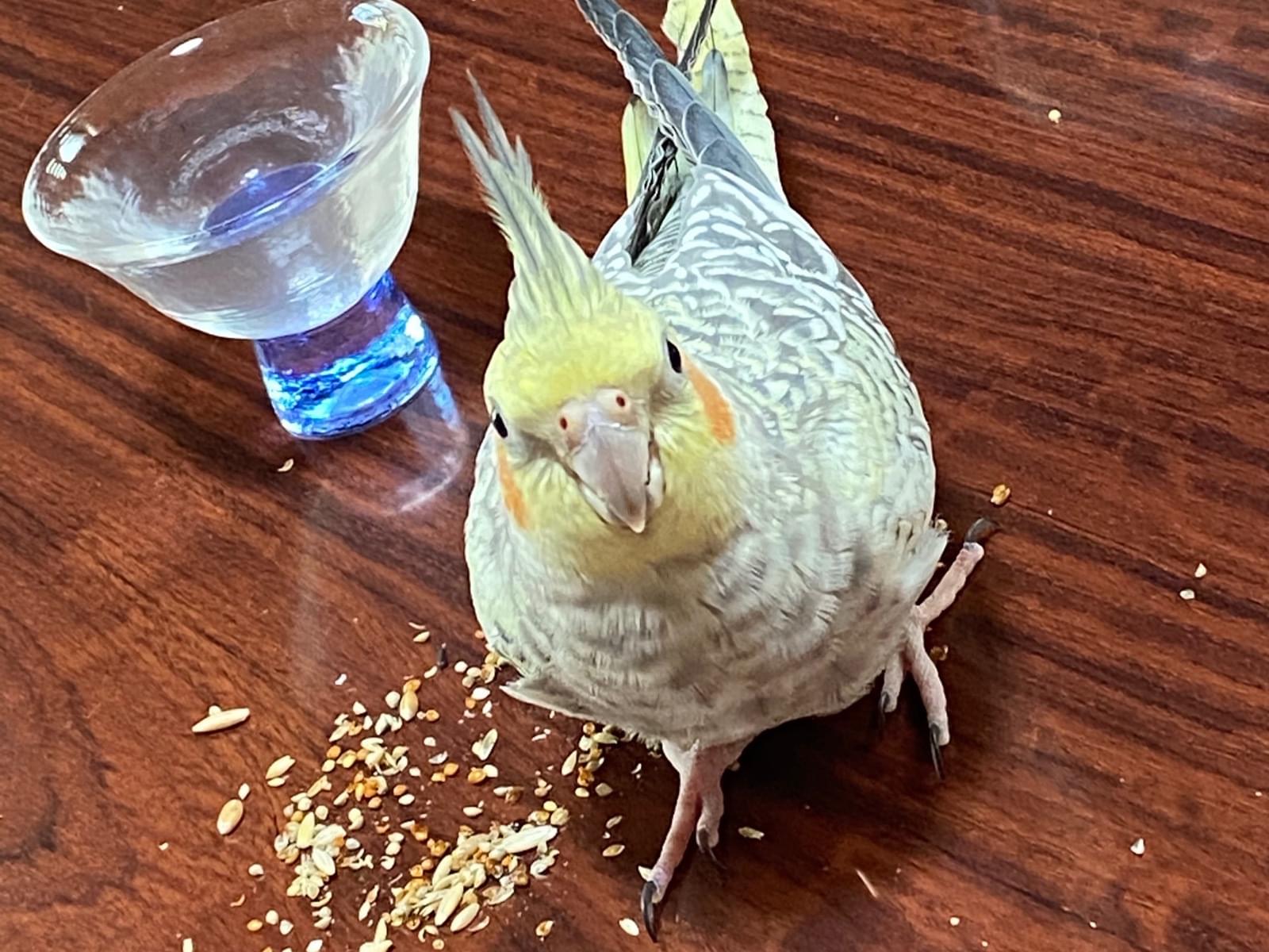 保護されたおかめインコちゃん、預かっています。
