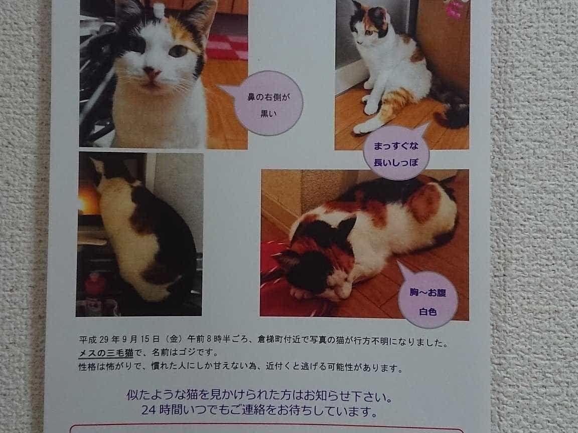 京都府舞鶴市で迷子になった三毛猫を探しています