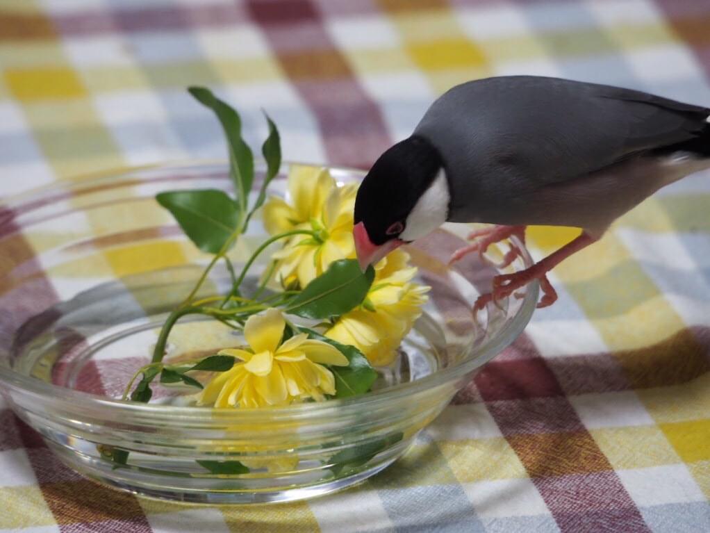 手のひらを見せ、もう片方の指で餌をつまんで「ポリ」と名前を呼ぶときます。