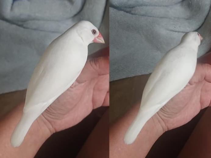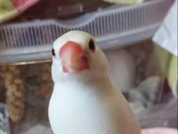 色:クチバシと目の周りが赤くて後は真っ白な白文鳥