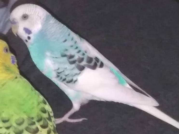 見た目:白と水色 ほっぺと羽に黒い模様があります。