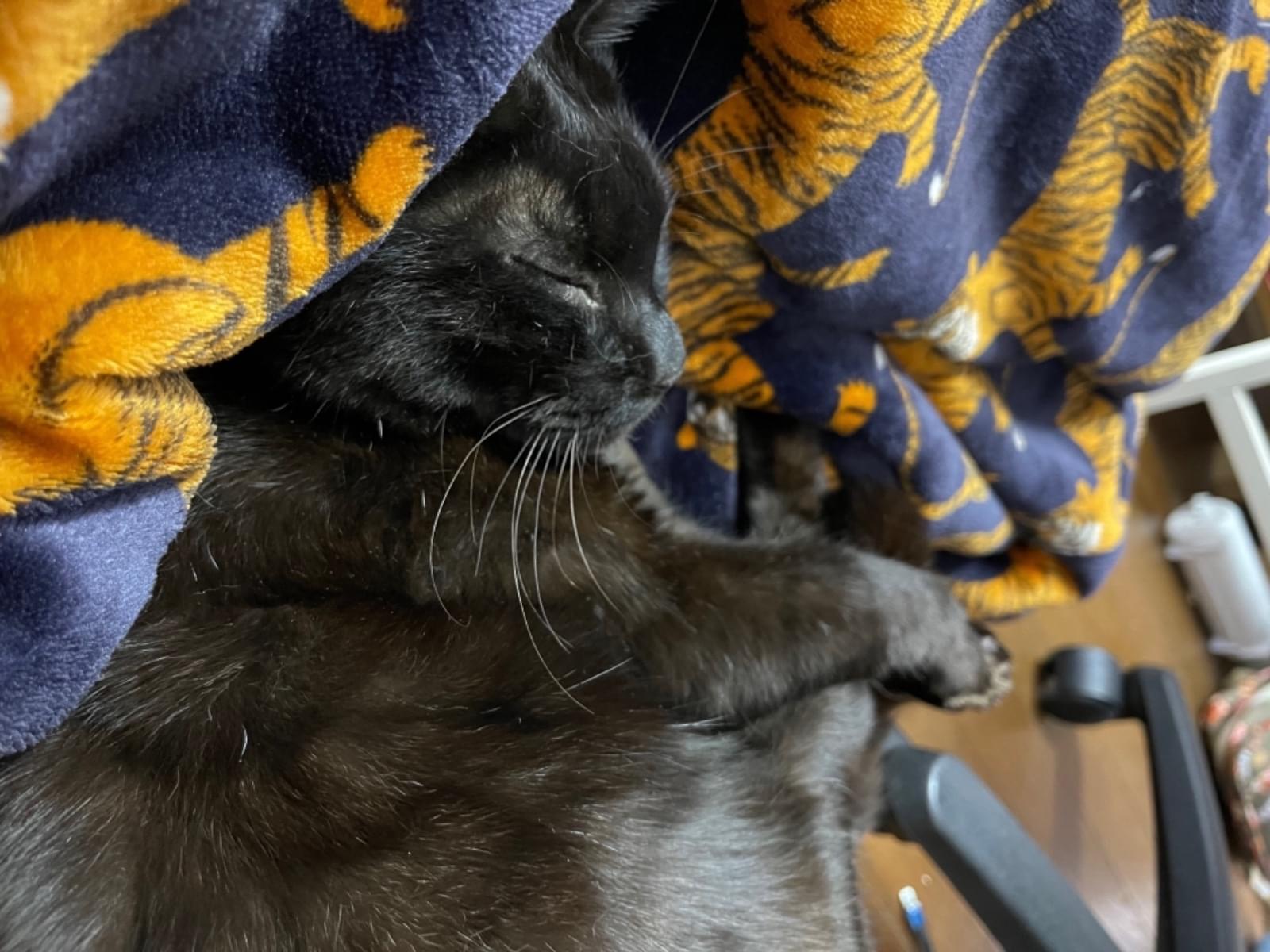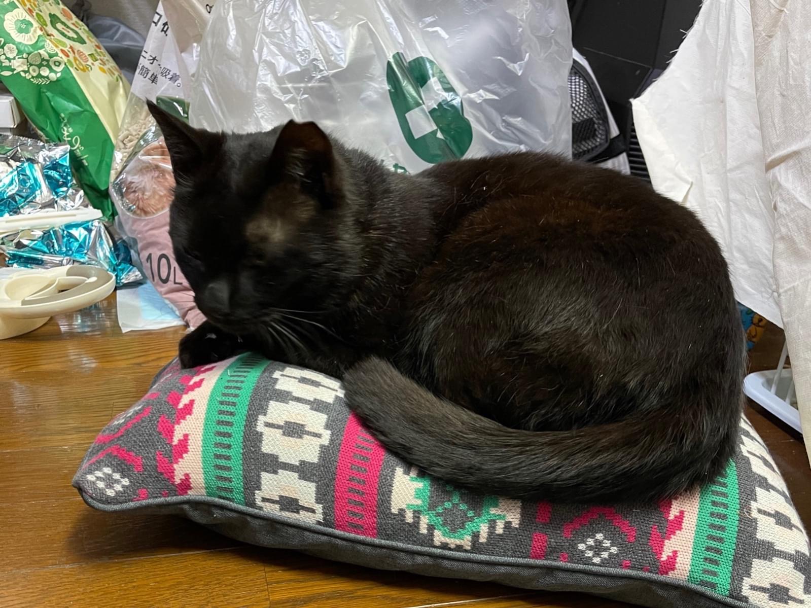 勾玉の飾りのついた白い首輪、左耳カット、真っ直ぐで太い尻尾が特徴です。