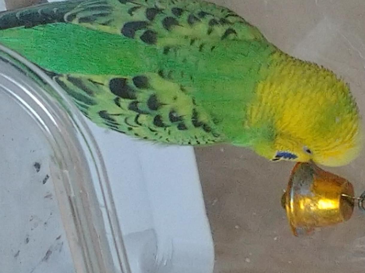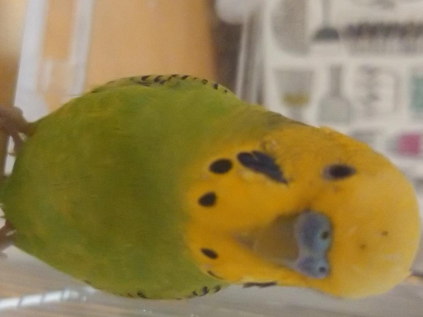 頭部キイロ身体黄緑色のセキセイインコを探しています。羽の部分に黒い模様あり。