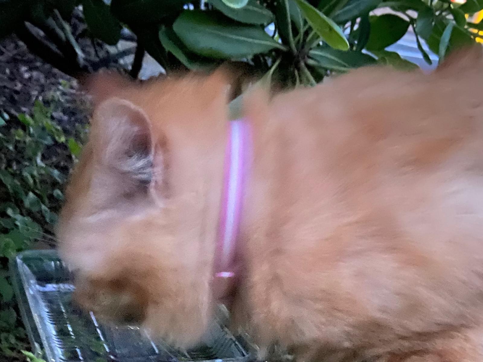 茶トラ。ピンクの首輪