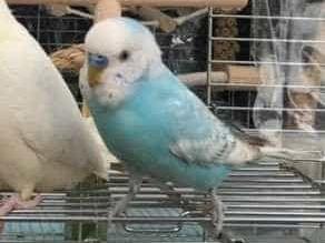 オスのセキセイインコ、体はブルーで頭が白いです。