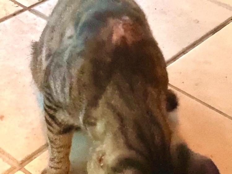 飼い主さん?とも思いましたが、雨の夜にも餌を求めてくる、未だに怪我の痕が残るこの猫さんを、飼い主さんならもう放し飼いにはしないと思うのです。