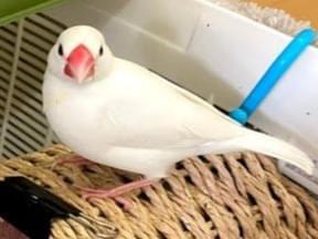 白文鳥のオスを探しています。右足に薄いグレーの傷跡があります。