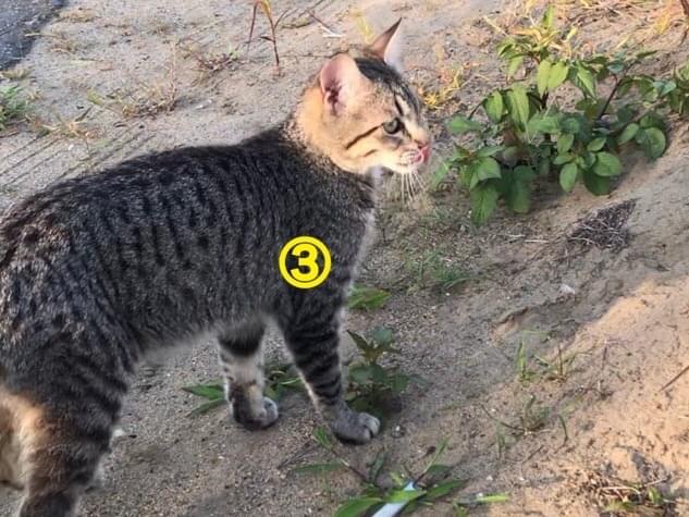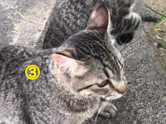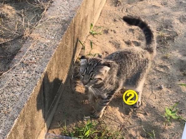 全部の猫が人慣れしており、触れる距離でも逃げないため元飼い猫かもしや誰かの外飼い猫かもしれません。