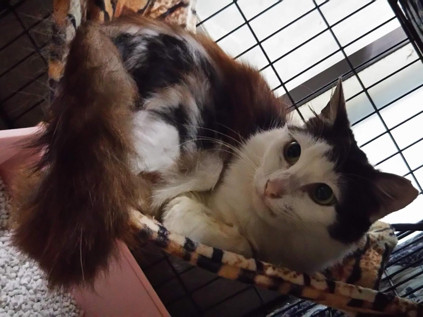 桜耳のメスのにゃんこです…毛足は長めで、体も大きめです。毛色は、顔、手足は白いですが、体は、茶と黒