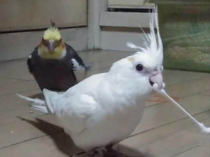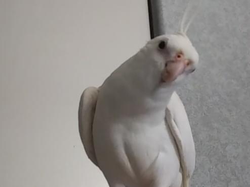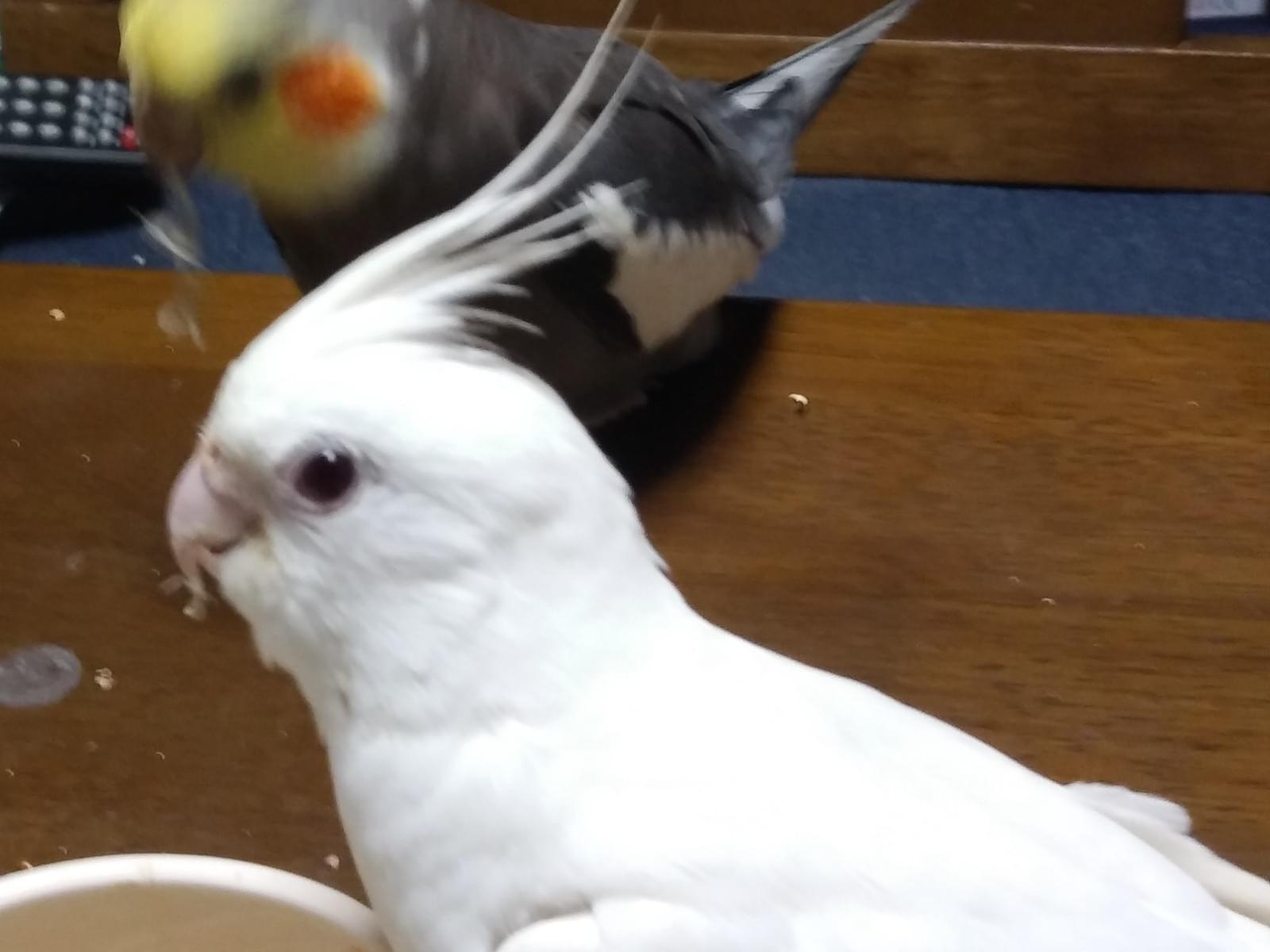 【行動】雌がよくする下を向いて翼を広げるポーズもしますが、雄がよくする通称『アジの開き』もします。機嫌が良いと片足を上げながら唄います。羽は切っていないので他県まで飛んでいる可能性があります。
